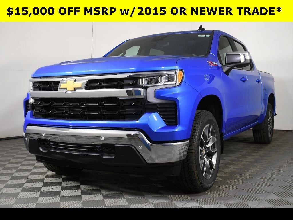 PREVIOUS PROGRESSIVE SERVICE RENTAL * Riptide Blue Metallic 2025 Chevrolet Silverado 1500 LT LT1 4WD 8-Speed Automatic EcoTec3 5.3L V8 All Wheel Drive, ** Apple CarPlay/Android Auto, ** Alloy Wheels / Premium Wheels, ** Automatic Emergency Braking, ** Backup Camera, ** Blind Spot Monitor, ** Cross Traffic Alert, ** Cruise Control, ** Heated Seats, ** Heated Steering Wheel, ** Keyless Entry, ** Keyless Start, ** Lane Departure Warning, ** Navigation System, ** Premium Sound System / Premium Audio, ** Rear Cross Traffic Alert, ** Remote Start, ** Satellite Radio, ** Stability Control, ** Steering Wheel Controls, ** Tow Hitch / Trailer Hitch, ** USB Port, ** WiFi Hotspot, ** All-Wheel Drive, ** Four-Wheel Drive / 4X4, 10-Way Power Driver Seat w/Lumbar, 12.3 Multicolor Reconfigurable Digital Display, 120-Volt Bed Mounted Power Outlet, 120-Volt Interior Power Outlet, 6-Speaker Audio System, Air Conditioning, All-Star Edition, All-Weather Floor Liner (LPO) (AAK), AM/FM radio: SiriusXM with 360L, Apple CarPlay/Android Auto, Auto High-beam Headlights, Auto-Locking Rear Differential, Automatic Emergency Braking, Automatic temperature control, Bluetooth® For Phone, Brake assist, Chevytec Spray-On Black Bedliner, Cloth Seat Trim, Convenience Package, Deep-Tinted Glass, Dual Exhaust w/Polished Outlets, Dual front impact airbags, Dual front side impact airbags, Dual Rear USB Ports (Charge Only), Dual-Zone Automatic Climate Control, Electric Rear-Window Defogger, Electronic Cruise Control, Electronic Stability Control, Emergency communication system: OnStar, EZ Lift Power Lock & Release Tailgate, Forward Collision Alert, Front dual zone A/C, Front Frame-Mounted Black Recovery Hooks, Front Pedestrian Braking, Front Rubberized Vinyl Floor Mats, Fully automatic headlights, HD Rear Vision Camera, Heated Front Seats, Heated Power-Adjustable Outside Mirrors, Heated Steering Wheel, Heavy-Duty Air Filter, Hill Descent Control, Hitch Guidance, Illuminated entry, Integrated Trailer Brake Controller, IntelliBeam Automatic High Beam On/Off, Keyless Open & Start, Lane Keep Assist w/Lane Departure Warning, LED Cargo Area Lighting, Manual Tilt/Telescoping Steering Column, Navigation System, Off-Road Suspension, Overhead console, Power driver seat, Power Front Windows w/Driver Express Up/Down, Power Front Windows w/Passenger Express Down, Power Rear Windows w/Express Down, Power windows, Protection Package, Radio data system, Radio: Chevrolet Infotainment 3 Premium System, Rear 60/40 Folding Bench Seat (Folds Up), Rear Rubberized-Vinyl Floor Mats, Rear Wheelhouse Liners, Rear window defroster, Remote keyless entry, Remote Start, Remote Start Package, Security system, Speed control, Speed-sensing steering, Steering wheel mounted audio controls, Teen Driver, Telescoping steering wheel, Theft Deterrent System (Unauthorized Entry), Tire Pressure Monitoring System, Trailering Package, Variably intermittent wipers, Wheels: 20 x 9 Painted Aluminum, Wrapped Steering Wheel, Z71 Off-Road & Protection Package, Z71 Off-Road Package.