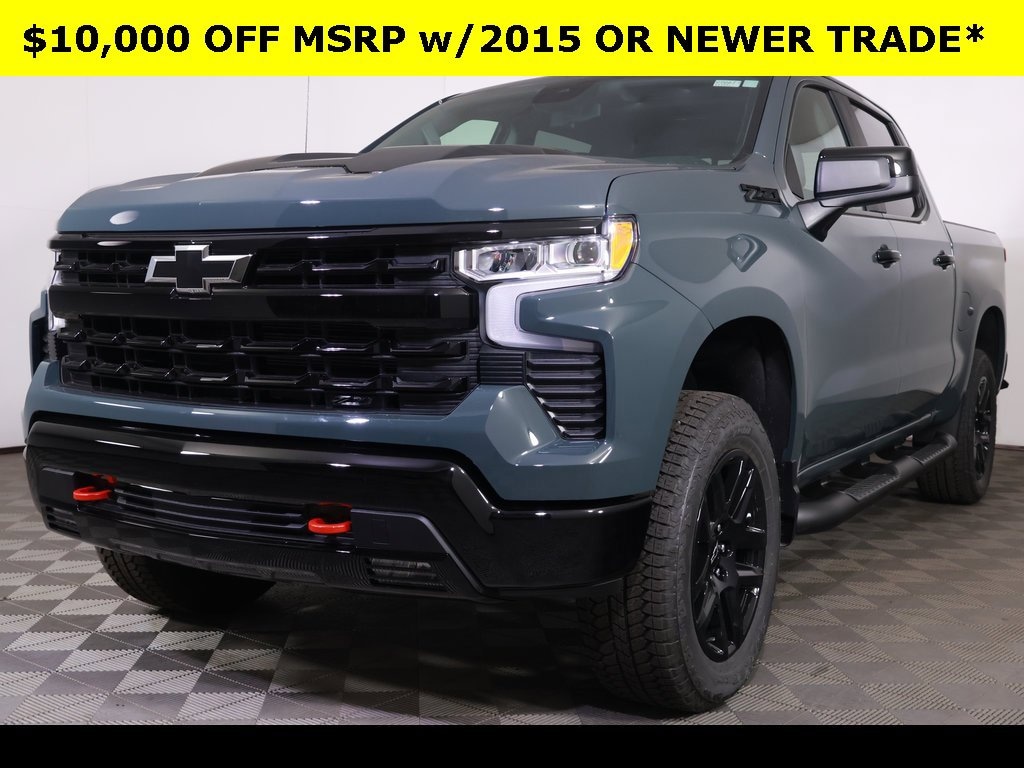 Cypress Gray 2026 Chevrolet Silverado 1500 LT Trail Boss 4WD 10-Speed Automatic EcoTec3 5.3L V8 All Wheel Drive, ** Apple CarPlay/Android Auto, ** Alloy Wheels / Premium Wheels, ** Automatic Emergency Braking, ** Backup Camera, ** Cruise Control, ** Heated Seats, ** Heated Steering Wheel, ** Keyless Entry, ** Keyless Start, ** Lane Departure Warning, ** Leather Seats, ** Navigation System, ** Panoramic Roof / Sunroof, ** Premium Sound System / Premium Audio, ** Remote Start, ** Satellite Radio, ** Stability Control, ** Steering Wheel Controls, ** Sunroof/Moonroof, ** Tow Hitch / Trailer Hitch, ** USB Port, ** WiFi Hotspot, ** All-Wheel Drive, ** Four-Wheel Drive / 4X4, 10-Way Power Driver Seat w/Lumbar, 12.3 Multicolor Reconfigurable Digital Display, 120-Volt Bed Mounted Power Outlet, 120-Volt Interior Power Outlet, 2 USB Data Ports, 4-Wheel Disc Brakes, 4 Black Round Assist Steps (LPO), 6-Speaker Audio System, ABS brakes, Air Conditioning, All-Weather Floor Liner (LPO) (AAK), AM/FM radio: SiriusXM with 360L, Apple CarPlay/Android Auto, Auto High-beam Headlights, Auto-Locking Rear Differential, Automatic Emergency Braking, Automatic temperature control, Black Name Plates (LPO), Bluetooth® For Phone, Brake assist, Chevytec Spray-On Black Bedliner, Color-Keyed Carpeting Floor Covering, Convenience Package, Convenience Package II, Dark Essentials Package (LPO), Deep-Tinted Glass, Delay-off headlights, Dual Exhaust w/Polished Outlets, Dual front impact airbags, Dual front side impact airbags, Dual Rear USB Ports (Charge Only), Dual-Zone Automatic Climate Control, Electric Rear-Window Defogger, Electronic Cruise Control, Electronic Stability Control, Emergency communication system: OnStar, EZ Lift Power Lock & Release Tailgate, Front Bucket Seats, Front Center Armrest w/Storage, Front dual zone A/C, Front fog lights, Front wheel independent suspension, Fully automatic headlights, Hard Folding Truck Bed Cover (LPO), Heated Front Seats, Heated Steering Wheel, Heavy-Duty Air Filter, Hill Descent Control, Hitch Guidance, Hitch Guidance w/Hitch View, Illuminated entry, In-Vehicle Trailering System App, Integrated Trailer Brake Controller, Keyless Open & Start, Leather Package, Leather-Appointed Front Seat Trim, Low tire pressure warning, Manual Tilt/Telescoping Steering Column, Navigation System, Occupant sensing airbag, Panic alarm, Performance Red Recovery Hooks, Power driver seat, Power Front Windows w/Driver Express Up/Down, Power Sliding Rear Window w/Rear Defogger, Power Sunroof, Power windows, Preferred Equipment Group 2LT, Premium Bose 7-Speaker Sound System, Protection Package, Radio: Chevrolet Infotainment 3 Premium System, Rear 60/40 Folding Bench Seat (Folds Up), Rear Seat w/Storage Package, Rear window defroster, Remote keyless entry, Remote Start, Security system, SiriusXM w/360L Trial Subscription, Speed-sensing steering, Split folding rear seat, Steering Wheel Audio Controls, Steering wheel mounted audio controls, Suspension Package, Theft Deterrent System (Unauthorized Entry), Tire Pressure Monitoring System, Traction control, Trailering Package, Universal Home Remote, Variably intermittent wipers, Wheels: 20 x 9 High Gloss Black Painted Alum, Wrapped Steering Wheel.* Offer subject to credit approval by participating lenders. Terms, conditions, and restrictions apply. Price includes $500 GM Card Sign & Spend incentive. Not combinable with other GM financing or lease offers. Trade-in incentive valid for 2015+ vehicles under 50,000 miles with clean title and accident-free CARFAX®. Estimated sale price is for reference only; actual eligibility may vary. Offers may require financing through preferred lenders. All rebates and incentives assigned to dealer. See dealer for full details.
