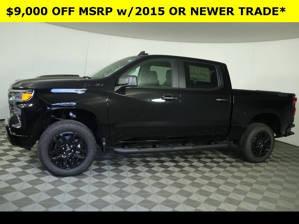 Black 2026 Chevrolet Silverado 1500 Custom Trail Boss 4WD 10-Speed Automatic EcoTec3 5.3L V8 All Wheel Drive, ** Apple CarPlay/Android Auto, ** Alloy Wheels / Premium Wheels, ** Automatic Emergency Braking, ** Backup Camera, ** Cruise Control, ** Keyless Entry, ** Keyless Start, ** Lane Departure Warning, ** Premium Sound System / Premium Audio, ** Remote Start, ** Satellite Radio, ** Stability Control, ** Steering Wheel Controls, ** Tow Hitch / Trailer Hitch, ** USB Port, ** WiFi Hotspot, ** All-Wheel Drive, ** Four-Wheel Drive / 4X4, 10-Way Power Driver Seat w/Lumbar, 120-Volt Bed Mounted Power Outlet, 120-Volt Interior Power Outlet, 4-Wheel Disc Brakes, 40/20/40 Front Split-Bench Seat, 6-Speaker Audio System, ABS brakes, Air Conditioning, All-Weather Floor Liner (LPO) (AAK), Alloy wheels, AM/FM radio: SiriusXM, Apple CarPlay/Android Auto, Auto High-beam Headlights, Auto-Locking Rear Differential, Automatic Emergency Braking, Black Dual Exhaust Tips, Bluetooth® For Phone, Brake assist, Chevytec Spray-On Black Bedliner, Cloth Seat Trim, Color-Keyed Carpeting Floor Covering, Custom Convenience Package, Deep-Tinted Glass, Delay-off headlights, Driver vanity mirror, Dual front impact airbags, Dual front side impact airbags, Electric Rear-Window Defogger, Electronic Cruise Control, Electronic Stability Control, Emergency communication system: OnStar, EZ Lift Power Lock & Release Tailgate, Following Distance Indicator, Forward Collision Alert, Front Center Armrest w/Storage, Front Frame-Mounted Black Recovery Hooks, Front Pedestrian Braking, Front reading lights, Front Rubberized Vinyl Floor Mats, Front wheel independent suspension, Fully automatic headlights, HD Rear Vision Camera, Heavy-Duty Air Filter, Hill Descent Control, Hitch Guidance, Illuminated entry, Lane Keep Assist w/Lane Departure Warning, LED Cargo Area Lighting, Low tire pressure warning, Manual Tilt Wheel Steering Column, Midnight Edition, Occupant sensing airbag, OnStar Services Capable, Outside temperature display, Overhead console, Panic alarm, Passenger vanity mirror, Power door mirrors, Power driver seat, Power Front Windows w/Driver Express Up/Down, Power windows, Radio data system, Radio: Chevrolet Infotainment 3 System, Rear 60/40 Folding Bench Seat (Folds Up), Rear reading lights, Rear Rubberized-Vinyl Floor Mats, Rear step bumper, Rear window defroster, Remote Keyless Entry, Remote Start, Security system, Silver-Hammer Interior Trim Kit (LPO), Speed control, Speed-sensing steering, Split folding rear seat, Suspension Package, Tachometer, Teen Driver, Theft Deterrent System (Unauthorized Entry), Tilt steering wheel, Tire Pressure Monitoring System, Traction control, Trailering Package, Trip computer, Voltmeter, Wheels: 20 x 9 High Gloss Black Painted Alum, Wi-Fi Hot Spot Capable.