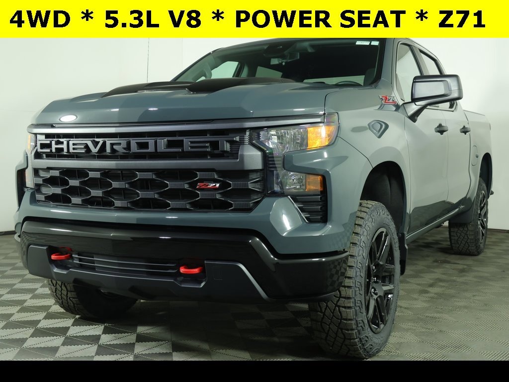 Cypress Gray 2026 Chevrolet Silverado 1500 Custom Trail Boss 4WD 10-Speed Automatic EcoTec3 5.3L V8 All Wheel Drive, ** Apple CarPlay/Android Auto, ** Alloy Wheels / Premium Wheels, ** Automatic Emergency Braking, ** Backup Camera, ** Cross Traffic Alert, ** Cruise Control, ** Keyless Entry, ** Keyless Start, ** Lane Departure Warning, ** Premium Sound System / Premium Audio, ** Remote Start, ** Satellite Radio, ** Stability Control, ** Steering Wheel Controls, ** Tow Hitch / Trailer Hitch, ** USB Port, ** WiFi Hotspot, ** All-Wheel Drive, ** Four-Wheel Drive / 4X4, 10-Way Power Driver Seat w/Lumbar, 120-Volt Bed Mounted Power Outlet, 4-Wheel Disc Brakes, 40/20/40 Front Split-Bench Seat, 6-Speaker Audio System, ABS brakes, Air Conditioning, AM/FM radio: SiriusXM, Apple CarPlay/Android Auto, Auto High-beam Headlights, Auto-Locking Rear Differential, Automatic Emergency Braking, Bluetooth® For Phone, Brake assist, Cloth Seat Trim, Compass, Custom Convenience Package, Deep-Tinted Glass, Delay-off headlights, Driver vanity mirror, Dual front impact airbags, Dual front side impact airbags, Electric Rear-Window Defogger, Electronic Cruise Control, Electronic Stability Control, Emergency communication system: OnStar, EZ Lift Power Lock & Release Tailgate, Following Distance Indicator, Forward Collision Alert, Front Pedestrian Braking, Front reading lights, Front wheel independent suspension, Fully automatic headlights, HD Rear Vision Camera, Heated door mirrors, Heavy-Duty Air Filter, Hill Descent Control, Hitch Guidance, Illuminated entry, IntelliBeam Automatic High Beam On/Off, Lane Keep Assist w/Lane Departure Warning, LED Cargo Area Lighting, Low tire pressure warning, Manual Tilt Wheel Steering Column, Occupant sensing airbag, Outside temperature display, Overhead console, Panic alarm, Passenger vanity mirror, Performance Red Recovery Hooks, Power door mirrors, Power driver seat, Power Front Windows w/Driver Express Up/Down, Power windows, Radio data system, Radio: Chevrolet Infotainment 3 System, Rear reading lights, Rear Rubberized-Vinyl Floor Mats, Rear step bumper, Rear window defroster, Remote Keyless Entry, Remote keyless entry, Remote Start, Security system, Speed control, Speed-sensing steering, Split folding rear seat, Suspension Package, Tachometer, Teen Driver, Theft Deterrent System (Unauthorized Entry), Tilt steering wheel, Tire Pressure Monitoring System, Traction control, Trailering Package, Trip computer, Variably intermittent wipers, Voltmeter, Wheels: 20 x 9 High Gloss Black Painted Alum, Wi-Fi Hot Spot Capable.