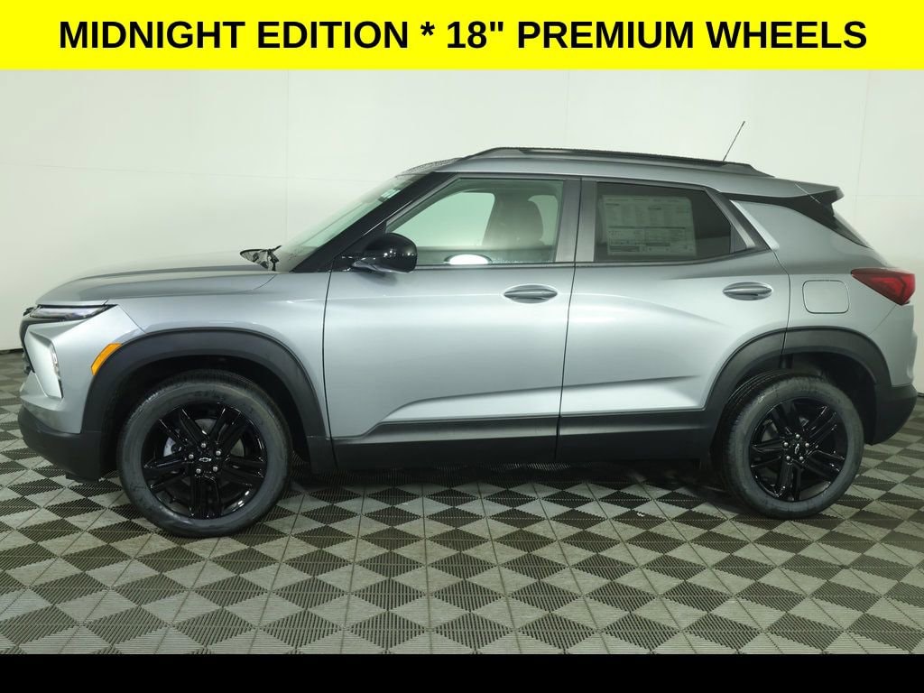 Sterling Gray Metallic 2026 Chevrolet TrailBlazer LT FWD CVT 1.2L I3 DI Flex Fuel Turbocharged DOHC 12V LEV3-SULEV30 137hp ** Apple CarPlay/Android Auto, ** Alloy Wheels / Premium Wheels, ** Automatic Emergency Braking, ** Backup Camera, ** Blind Spot Monitor, ** Cruise Control, ** Keyless Entry, ** Keyless Start, ** Lane Departure Warning, ** Premium Sound System / Premium Audio, ** Remote Start, ** Satellite Radio, ** Stability Control, ** Steering Wheel Controls, ** USB Port, ** WiFi Hotspot, 1 Type-A and 1 Type-C USB Ports, 4-Wheel Disc Brakes, 6 Speakers, ABS brakes, Air Conditioning, AM/FM radio: SiriusXM, Auto High-beam Headlights, Black Exterior Badging, Black Steering Wheel Bowtie, Brake assist, Cloth Seat Trim, Compass, Delay-off headlights, Driver Confidence Package, Driver vanity mirror, Dual front impact airbags, Dual front side impact airbags, Electronic Stability Control, Emergency communication system: OnStar and Chevrolet connected services capable, Enhanced Performance 6-Speaker Audio System, Exterior Parking Camera Rear, Flat-Folding Front Passenger Seatback, Front and Rear Black Bowties, Front and Rear Black Fascia Lower Insert, Front Bucket Seats, Front Center Armrest, Front reading lights, Front wheel independent suspension, Fully automatic headlights, High Gloss Black Body-Color Mirror Caps, High Gloss Black Grille Bar, High Gloss Black Roof-Mounted Side Rails, Illuminated entry, Lane Change Alert with Side Blind Zone Alert, Low tire pressure warning, Midnight Edition, Occupant sensing airbag, Overhead console, Panic alarm, Passenger vanity mirror, Power door mirrors, Power windows, Preferred Equipment Group 1LT, Radio data system, Radio: AM/FM Stereo Audio System, Rear Cross Traffic Alert, Rear Park Assist, Rear window defroster, Rear window wiper, Remote keyless entry, Ride and Handling Suspension, Security system, Speed control, Split folding rear seat, Steering wheel mounted audio controls, Tachometer, Telescoping steering wheel, Tilt steering wheel, Traction control, Trip computer, Variably intermittent wipers, Wheels: 18 High Gloss Black Alloy, Wireless Apple CarPlay/Android Auto.