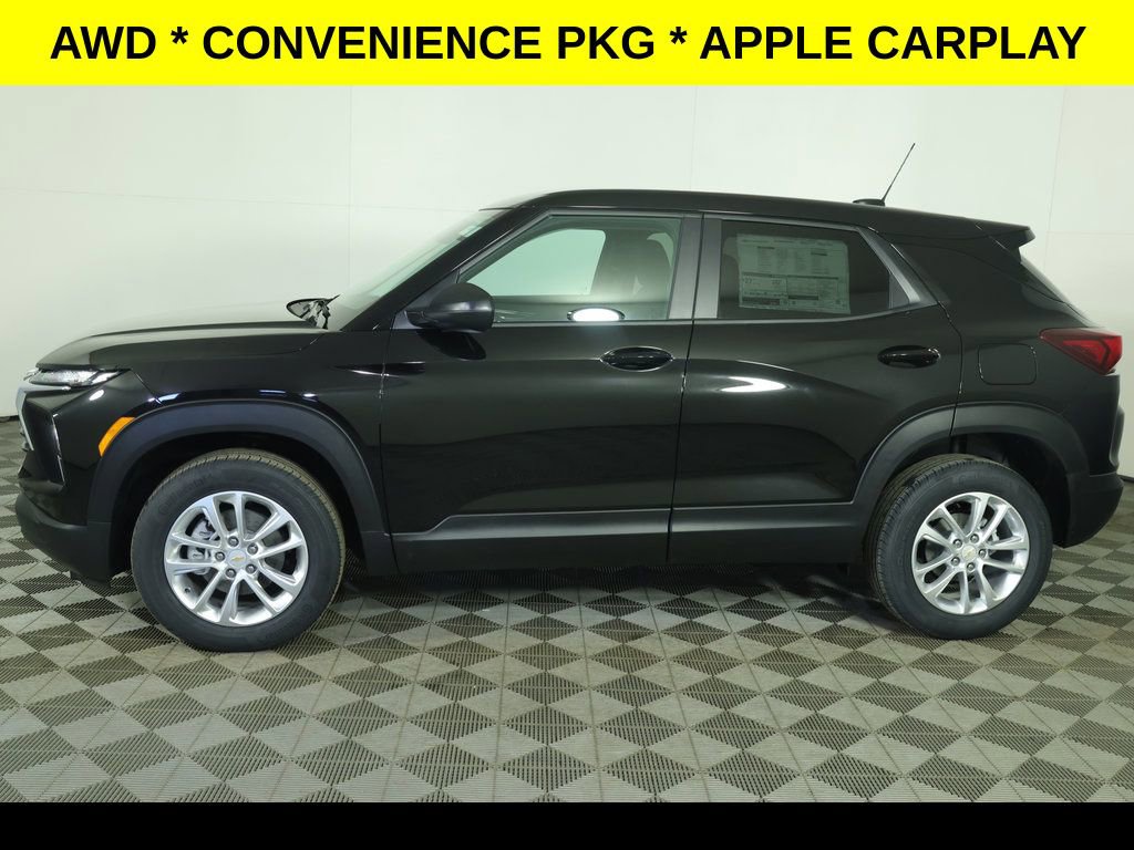 Mosaic Black Metallic 2026 Chevrolet TrailBlazer LS AWD 9-Speed Automatic 1.3L I3 Turbocharged DOHC 12V LEV3-SULEV30 155hp All Wheel Drive, ** Apple CarPlay/Android Auto, ** Alloy Wheels / Premium Wheels, ** Automatic Emergency Braking, ** Backup Camera, ** Blind Spot Monitor, ** Cross Traffic Alert, ** Cruise Control, ** Keyless Entry, ** Keyless Start, ** Lane Departure Warning, ** Premium Sound System / Premium Audio, ** Rear Cross Traffic Alert, ** Remote Start, ** Satellite Radio, ** Stability Control, ** Steering Wheel Controls, ** USB Port, ** WiFi Hotspot, ** All-Wheel Drive, ** Four-Wheel Drive / 4X4, 4-Wheel Disc Brakes, 6-Speaker Audio System Feature with Amplifier, ABS brakes, Air Conditioning, AM/FM radio: SiriusXM, Auto High-beam Headlights, Brake assist, Cloth Seat Trim, Compass, Delay-off headlights, Driver vanity mirror, Dual front impact airbags, Dual front side impact airbags, Electronic Stability Control, Emergency communication system: OnStar and Chevrolet connected services capable, Exterior Parking Camera Rear, Flat-Folding Front Passenger Seatback, Front Bucket Seats, Front Center Armrest, Front reading lights, Front wheel independent suspension, Fully automatic headlights, Illuminated entry, Knee airbag, Lane Change Alert with Side Blind Zone Alert, Low tire pressure warning, LS Confidence Package, LS Convenience Package, Occupant sensing airbag, Overhead console, Panic alarm, Passenger vanity mirror, Power door mirrors, Preferred Equipment Group 1LS, Radio data system, Rear Cross Traffic Alert, Rear Park Assist, Rear window defroster, Rear window wiper, Rear Windows and Liftgate Deep-Tinted Glass, Remote Start, Ride and Handling Suspension, Security system, Speed control, Split folding rear seat, Steering wheel mounted audio controls, Tachometer, Telescoping steering wheel, Tilt steering wheel, Traction control, Trip computer, Variably intermittent wipers, Wheels: 17 Silver-Painted Aluminum, Wireless Apple CarPlay/Android Auto.
