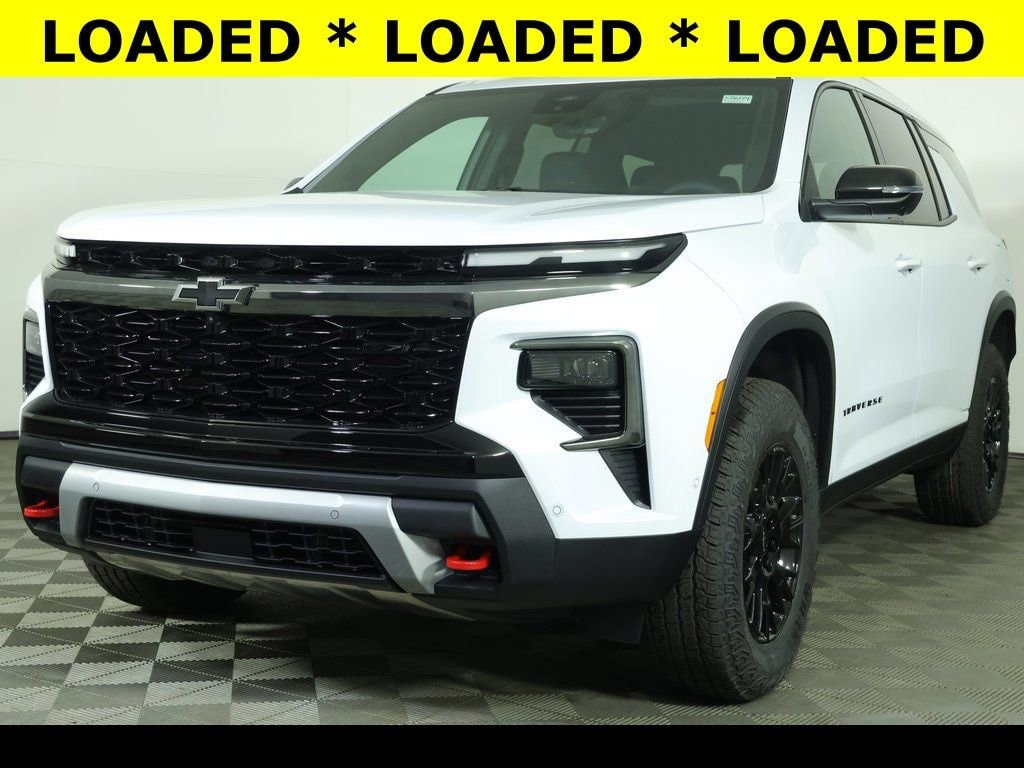 Polar White Tricoat 2026 Chevrolet Traverse Z71 AWD 8-Speed Automatic 2.5L DOHC All Wheel Drive, ** Adaptive Cruise Control, ** Apple CarPlay/Android Auto, ** Alloy Wheels / Premium Wheels, ** Automatic Emergency Braking, ** Backup Camera, ** Blind Spot Monitor, ** Cross Traffic Alert, ** Cruise Control, ** Heated Seats, ** Heated Steering Wheel, ** Keyless Entry, ** Keyless Start, ** Lane Departure Warning, ** Leather Seats, ** Navigation System, ** Panoramic Roof / Sunroof, ** Premium Sound System / Premium Audio, ** Rear Cross Traffic Alert, ** Remote Start, ** Satellite Radio, ** Stability Control, ** Steering Wheel Controls, ** Sunroof/Moonroof, ** Third Row Seating / 3rd Row Seating, ** USB Port, ** WiFi Hotspot, ** All-Wheel Drive, ** Four-Wheel Drive / 4X4, 3rd row seats: split-bench, 4-Wheel Disc Brakes, 8-Way Power Driver Seat Adjuster, ABS brakes, Active Noise Cancellation, Air Conditioning, AM/FM radio: SiriusXM with 360L, Apple CarPlay/Android Auto, Auto High-beam Headlights, Automatic temperature control, Bose Premium 12-Speaker Audio System Feature, Brake assist, Child-Seat-Sensing Airbag, Compass, Delay-off headlights, Driver Attention Assist, Driver Confidence Package, Driver vanity mirror, Dual front impact airbags, Dual front side impact airbags, Electronic Stability Control, Emergency communication system: OnStar, Enhanced Automatic Parking Assist, Enhanced Driving Package, Evotex Seat Trim, Four wheel independent suspension, Front Bucket Seats, Front Center Armrest, Front dual zone A/C, Front reading lights, Fully automatic headlights, HD Surround Vision, Heated door mirrors, Heated front seats, Heated steering wheel, Illuminated entry, Key Card, Low tire pressure warning, Navigation System, Occupant sensing airbag, Outside temperature display, Overhead console, Panic alarm, Passenger vanity mirror, Power door mirrors, Power driver seat, Power Liftgate, Power Outlet, Power windows, Radio data system, Rear air conditioning, Rear Camera Mirror, Rear Pedestrian Alert, Rear reading lights, Rear window defroster, Rear window wiper, Remote keyless entry, Security system, Speed control, Speed-sensing steering, Steering wheel mounted audio controls, Super Cruise, Tachometer, Telescoping steering wheel, Tilt steering wheel, Traction control, Traffic Sign Recognition, Trip computer, Turn signal indicator mirrors, Variably intermittent wipers, Voltmeter.