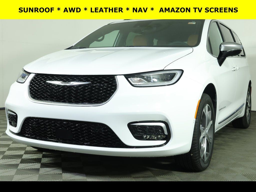 AVAILABLE PROGRESSIVE SERVICE RENTAL ** Bright White Clearcoat 2026 Chrysler Pacifica Pinnacle AWD 9-Speed 948TE Automatic 3.6L V6 24V VVT ** Adaptive Cruise Control, ** All-Wheel Drive, ** Alloy Wheels / Premium Wheels, ** Apple CarPlay/Android Auto, ** Automatic Emergency Braking, ** Backup Camera, ** Blind Spot Monitor, ** Cooled Seats, ** Cross Traffic Alert, ** Cruise Control, ** Four-Wheel Drive / 4X4, ** Heated Seats, ** Heated Steering Wheel, ** Keyless Entry, ** Keyless Start, ** Lane Departure Warning, ** Leather Seats, ** Navigation System, ** Panoramic Roof / Sunroof, ** Premium Sound System / Premium Audio, ** Rear Cross Traffic Alert, ** Rear Seat Entertainment, ** Remote Start, ** Satellite Radio, ** Stability Control, ** Steering Wheel Controls, ** Sunroof/Moonroof, ** Third Row Seating / 3rd Row Seating, ** USB Port, ** WiFi Hotspot, 3rd row seats: split-bench, 4-Wheel Disc Brakes, A/V remote, ABS brakes, Air Conditioning, AM/FM radio: SiriusXM 360L, Apple CarPlay/Android Auto, Auto-dimming door mirrors, Auto-dimming Rear-View mirror, Automatic temperature control, AWD Suspension, Bodyside moldings, Brake assist, Compass, Delay-off headlights, Driver vanity mirror, Dual front impact airbags, Dual front side impact airbags, Electronic Stability Control, Emergency communication system: Chrysler Connect, Four wheel independent suspension, Front Bucket Seats, Front dual zone A/C, Front fog lights, Front reading lights, Fully automatic headlights, Garage door transmitter, harman/kardon® Speakers, Headphones, Heated door mirrors, Heated front seats, Heated rear seats, Heated steering wheel, Illuminated entry, Knee airbag, Low tire pressure warning, Lumbar Pillow, Memory seat, Navigation System, Occupant sensing airbag, Outside temperature display, Overhead console, Panic alarm, ParkView Rear Back-Up Camera, Passenger vanity mirror, Power door mirrors, Power driver seat, Power Liftgate, Power moonroof, Power passenger seat, Power windows, Premium Leather Trimmed Bucket Seats, Quick Order Package 27S, Radio data system, Radio: Uconnect 5 Nav w/10.1" Display, Rain sensing wipers, Rear air conditioning, Rear reading lights, Rear window defroster, Rear window wiper, Reclining 3rd row seat, Remote keyless entry, Speed control, Split folding rear seat, Steering wheel mounted audio controls, Tachometer, Telescoping steering wheel, Tilt steering wheel, Traction control, Trip computer, Turn signal indicator mirrors, Variably intermittent wipers, Ventilated front seats, Voltmeter, Wheels: 20" x 7.5" Paint/Polish Aluminum Design 2.