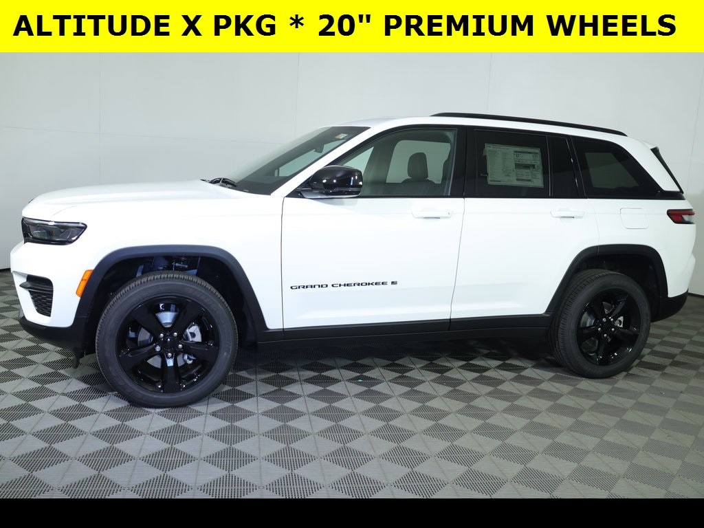 Bright White Clearcoat 2025 Jeep Grand Cherokee Altitude X 4WD 8-Speed Automatic 3.6L V6 24V VVT ** Adaptive Cruise Control, ** All-Wheel Drive, ** Alloy Wheels / Premium Wheels, ** Apple CarPlay/Android Auto, ** Backup Camera, ** Blind Spot Monitor, ** Cross Traffic Alert, ** Cruise Control, ** Four-Wheel Drive / 4X4, ** Heated Seats, ** Heated Steering Wheel, ** Keyless Entry, ** Keyless Start, ** Lane Departure Warning, ** Leather Seats, ** Panoramic Roof / Sunroof, ** Premium Sound System / Premium Audio, ** Rear Cross Traffic Alert, ** Remote Start, ** Satellite Radio, ** Stability Control, ** Steering Wheel Controls, ** Sunroof/Moonroof, ** USB Port, ** WiFi Hotspot, 115V Auxiliary Power Outlet, 4-Wheel Disc Brakes, 6 Speakers, ABS brakes, Air Conditioning, Alloy wheels, Altitude X, AM/FM radio: SiriusXM, Anti-whiplash front head restraints, Automatic temperature control, Brake assist, Capri Leatherette/Suede Seats, Compass, Delay-off headlights, Delete Laredo Badge, Driver vanity mirror, Dual front impact airbags, Dual front side impact airbags, Electronic Stability Control, Emergency communication system, Four wheel independent suspension, Front Bucket Seats, Front Center Armrest w/Storage, Front dual zone A/C, Front reading lights, Fully automatic headlights, Heated door mirrors, Heated Front Seats, Heated Steering Wheel, Illuminated entry, Knee airbag, Low tire pressure warning, Occupant sensing airbag, Outside temperature display, Overhead console, Panic alarm, ParkView Rear Back-Up Camera, Passenger vanity mirror, Power door mirrors, Power driver seat, Power Liftgate, Power Sunroof, Power windows, Quick Order Package 23M Altitude X, Radio data system, Radio: Uconnect 5 w/8.4" Display, Rain Sensitive Windshield Wipers, Rear reading lights, Rear window defroster, Rear window wiper, Remote keyless entry, Remote Start, Security system, Selectable Tire Fill Alert, Speed control, Speed-Sensitive Wipers, Split folding rear seat, Steering wheel mounted audio controls, Tachometer, Telescoping steering wheel, Tilt steering wheel, Traction control, Trip computer, Variably intermittent wipers, Voltmeter, Wheels: 18" x 8" Fully Painted Aluminum 1, Wireless Charging Pad.