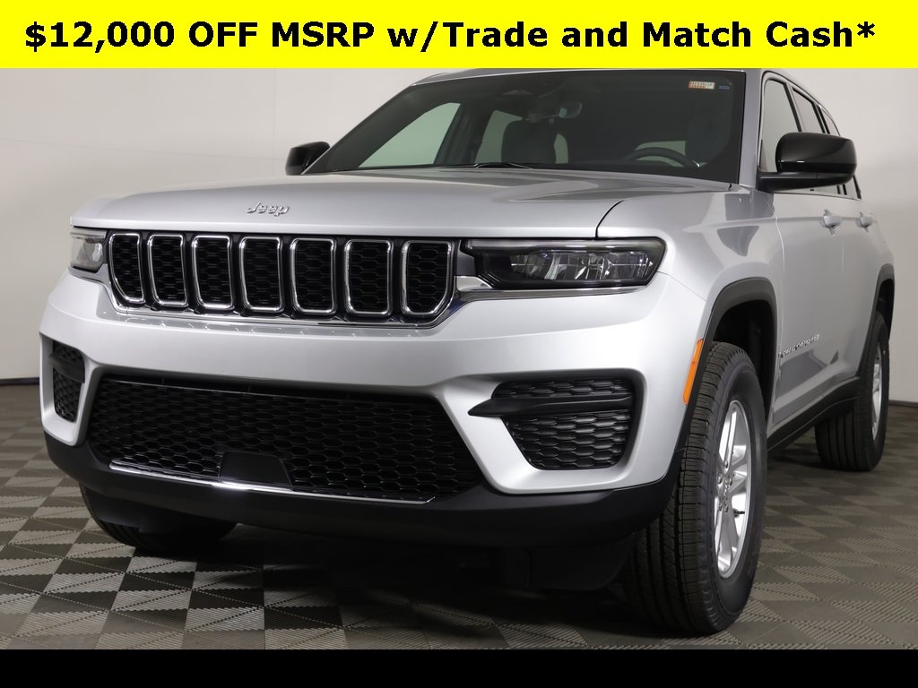 Silver Zynith 2025 Jeep Grand Cherokee Laredo 4WD 8-Speed Automatic 3.6L V6 24V VVT ** Adaptive Cruise Control, ** All-Wheel Drive, ** Alloy Wheels / Premium Wheels, ** Apple CarPlay/Android Auto, ** Backup Camera, ** Blind Spot Monitor, ** Cross Traffic Alert, ** Cruise Control, ** Four-Wheel Drive / 4X4, ** Heated Seats, ** Heated Steering Wheel, ** Keyless Entry, ** Keyless Start, ** Premium Sound System / Premium Audio, ** Rear Cross Traffic Alert, ** Remote Start, ** Satellite Radio, ** Stability Control, ** Steering Wheel Controls, ** USB Port, ** WiFi Hotspot, 115V Auxiliary Power Outlet, 4-Wheel Disc Brakes, 6 Speakers, ABS brakes, Air Conditioning, AM/FM radio: SiriusXM, Anti-whiplash front head restraints, Automatic temperature control, Brake assist, Cloth Seats, Compass, Delay-off headlights, Driver vanity mirror, Dual front impact airbags, Dual front side impact airbags, Electronic Stability Control, Emergency communication system, Four wheel independent suspension, Front Bucket Seats, Front Center Armrest w/Storage, Front dual zone A/C, Front reading lights, Fully automatic headlights, Heated door mirrors, Heated Front Seats, Heated Steering Wheel, Illuminated entry, Knee airbag, Low tire pressure warning, Luxury Tech Group I, Occupant sensing airbag, Outside temperature display, Overhead console, Panic alarm, ParkView Rear Back-Up Camera, Passenger vanity mirror, Power door mirrors, Power driver seat, Power Liftgate, Power windows, Quick Order Package 23A Laredo, Radio data system, Radio: Uconnect 5 w/8.4" Display, Rain Sensitive Windshield Wipers, Rear reading lights, Rear window defroster, Rear window wiper, Remote keyless entry, Remote Start, Satellite Radio, Secondary Active Grille Shutters, Security system, Selectable Tire Fill Alert, Speed control, Speed-Sensitive Wipers, Split folding rear seat, Steering wheel mounted audio controls, Tachometer, Telescoping steering wheel, Tilt steering wheel, Traction control, Trip computer, Variably intermittent wipers, Voltmeter, Wheels: 17" x 6.5" Fully Painted Aluminum, Wireless Charging Pad.