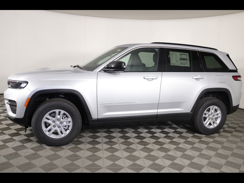 Silver Zynith 2025 Jeep Grand Cherokee Laredo 4WD 8-Speed Automatic 3.6L V6 24V VVT ** Adaptive Cruise Control, ** Alloy Wheels / Premium Wheels, ** Apple CarPlay/Android Auto, ** Backup Camera, ** Blind Spot Monitor, ** Cross Traffic Alert, ** Cruise Control, ** Heated Seats, ** Heated Steering Wheel, ** Keyless Entry, ** Keyless Start, ** Premium Sound System / Premium Audio, ** Rear Cross Traffic Alert, ** Remote Start, ** Satellite Radio, ** Stability Control, ** Steering Wheel Controls, ** USB Port, ** WiFi Hotspot, ** All-Wheel Drive, ** Four-Wheel Drive / 4X4, 115V Auxiliary Power Outlet, 4-Wheel Disc Brakes, 6 Speakers, ABS brakes, Air Conditioning, AM/FM radio: SiriusXM, Anti-whiplash front head restraints, Automatic temperature control, Brake assist, Cloth Seats, Compass, Delay-off headlights, Driver vanity mirror, Dual front impact airbags, Dual front side impact airbags, Electronic Stability Control, Emergency communication system, Four wheel independent suspension, Front Bucket Seats, Front Center Armrest w/Storage, Front dual zone A/C, Front reading lights, Fully automatic headlights, Heated door mirrors, Heated Front Seats, Heated Steering Wheel, Illuminated entry, Knee airbag, Low tire pressure warning, Luxury Tech Group I, Occupant sensing airbag, Outside temperature display, Overhead console, Panic alarm, ParkView Rear Back-Up Camera, Passenger vanity mirror, Power door mirrors, Power driver seat, Power Liftgate, Power windows, Quick Order Package 23A Laredo, Radio data system, Radio: Uconnect 5 w/8.4" Display, Rain Sensitive Windshield Wipers, Rear reading lights, Rear window defroster, Rear window wiper, Remote keyless entry, Remote Start, Satellite Radio, Secondary Active Grille Shutters, Security system, Selectable Tire Fill Alert, Speed control, Speed-Sensitive Wipers, Split folding rear seat, Steering wheel mounted audio controls, Tachometer, Telescoping steering wheel, Tilt steering wheel, Traction control, Trip computer, Variably intermittent wipers, Voltmeter, Wheels: 17" x 6.5" Fully Painted Aluminum, Wireless Charging Pad.