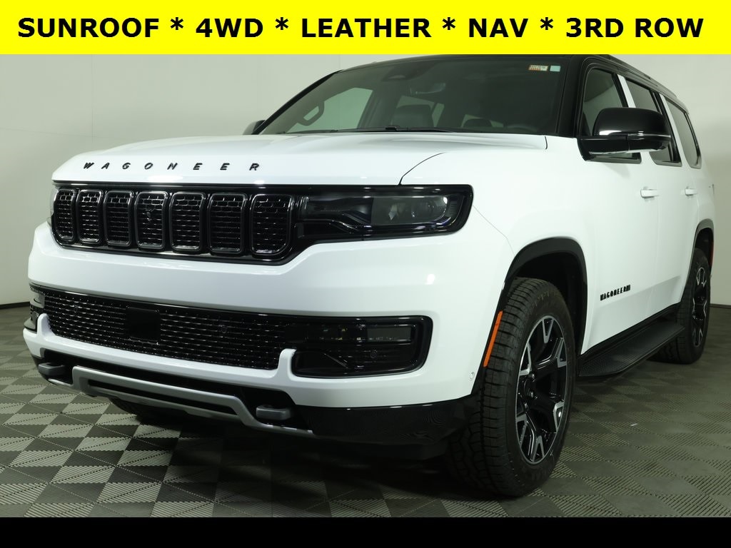 Bright White Clearcoat 2025 Jeep Wagoneer Series II 4WD 8-Speed Automatic 3.0L I6 ** Adaptive Cruise Control, ** Alloy Wheels / Premium Wheels, ** Apple CarPlay/Android Auto, ** Automatic Emergency Braking, ** Backup Camera, ** Blind Spot Monitor, ** Cooled Seats, ** Cross Traffic Alert, ** Cruise Control, ** Heated Seats, ** Heated Steering Wheel, ** Keyless Entry, ** Keyless Start, ** Lane Departure Warning, ** Leather Seats, ** Navigation System, ** Panoramic Roof / Sunroof, ** Premium Sound System / Premium Audio, ** Rear Cross Traffic Alert, ** Remote Start, ** Satellite Radio, ** Stability Control, ** Steering Wheel Controls, ** Sunroof/Moonroof, ** Third Row Seating / 3rd Row Seating, ** USB Port, ** WiFi Hotspot, ** All-Wheel Drive, ** Four-Wheel Drive / 4X4, 10 Speakers, 2 Speed On Demand Transfer Case, 3 Panel Sunroof, 3.92 Rear Axle Ratio, 3rd row seats: bench, 4-Wheel Disc Brakes, 60/40 Power Recline 3rd Row Seat, ABS brakes, Adjustable Roof Rail Crossbars, Air Conditioning, All-Season Floor Mats, AM/FM radio: SiriusXM with 360L, Anti-whiplash front head restraints, Apple CarPlay/Android Auto, Audio memory, Auto Adjust In Reverse Exterior Mirrors, Auto High Beam Headlamp Control, Auto Power Folding Exterior Mirrors, Auto-Dimming Exterior Driver Mirror, Auto-dimming Rear-View mirror, Auto-leveling suspension, Automatic temperature control, Black Roof, Brake assist, Cargo Tray, Compass, Delay-off headlights, Driver vanity mirror, Dual front impact airbags, Dual front side impact airbags, Electronic Rear Limited Slip Differential, Electronic Stability Control, Emergency communication system: Jeep Connect, Exterior Mirrors Approach Lamps, Exterior Mirrors w/Memory, Exterior Mirrors w/Supplemental Signals, Four wheel independent suspension, Front Bucket Seats, Front dual zone A/C, Front fog lights, Fully automatic headlights, Garage door transmitter, Genuine wood dashboard insert, Heated Exterior Mirrors, Heated front seats, Heated rear seats, Heated steering wheel, Heavy-Duty Engine Cooling, Illuminated entry, Knee airbag, Leather Trimmed Bucket Seats, Low tire pressure warning, Memory seat, Navigation System, Occupant sensing airbag, Outside temperature display, Overhead console, Overland Appearance Package, P&P Park & Unpark Assist w/Stop System, Panic alarm, ParkView Rear Back-Up Camera, Passenger seat mounted armrest, Passenger vanity mirror, Power adjustable front head restraints, Power door mirrors, Power driver seat, Power Liftgate, Power passenger seat, Power windows, Quadra-Lift Air Suspension, Quick Order Package 25P Overland, Radio data system, Radio: Uconnect 5 Nav w/10.1" Display, Rain sensing wipers, Rear air conditioning, Rear dual zone A/C, Rear reading lights, Rear seat center armrest, Rear window defroster, Rear window wiper, Reclining 3rd row seat, Remote keyless entry, Removable Rear Tow Hook, Security system, Selec-Speed Control, Semi Active Damping, Side Distance Warning, Speed control, Speed-sensing steering, Speed-Sensitive Wipers, Split folding rear seat, Steering wheel memory, Steering wheel mounted audio controls, Surround View Camera System, Tachometer, Telescoping steering wheel, Tilt steering wheel, Traction control, Trailer Brake Control, Trailer Hitch Zoom, Trip computer, Turn signal indicator mirrors, Vapor Tow Hooks, Variably intermittent wipers, Ventilated front seats, Voltmeter, Wheels: 20" x 9.0" Machine Face Painted Aluminum.