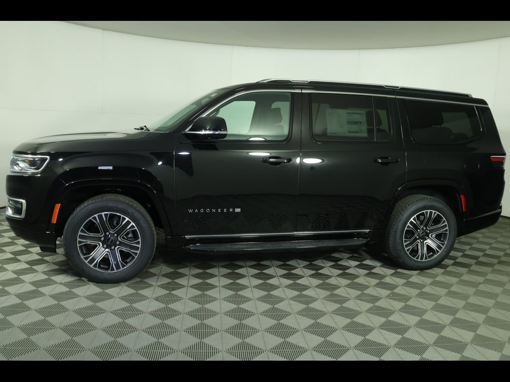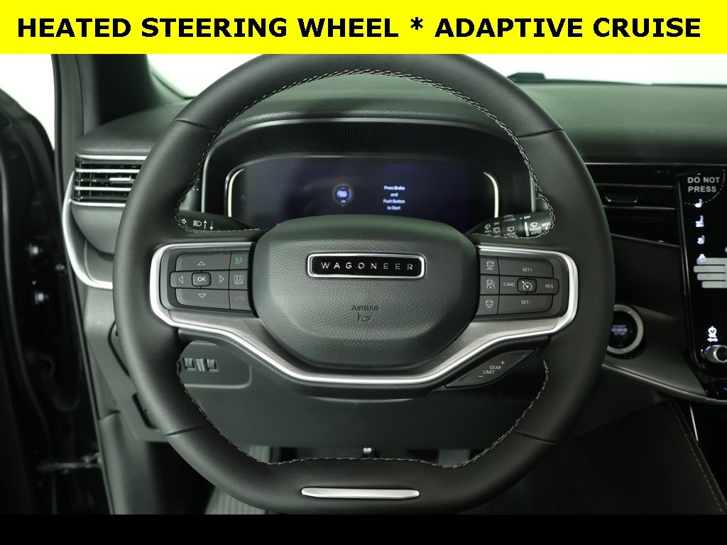 Diamond Black Crystal Pearlcoat 2025 Jeep Wagoneer 4WD 8-Speed Automatic 3.0L I6 ** Adaptive Cruise Control, ** All-Wheel Drive, ** Alloy Wheels / Premium Wheels, ** Apple CarPlay/Android Auto, ** Automatic Emergency Braking, ** Backup Camera, ** Blind Spot Monitor, ** Cooled Seats, ** Cross Traffic Alert, ** Cruise Control, ** Four-Wheel Drive / 4X4, ** Heated Seats, ** Heated Steering Wheel, ** Keyless Entry, ** Keyless Start, ** Lane Departure Warning, ** Leather Seats, ** Navigation System, ** Premium Sound System / Premium Audio, ** Rear Cross Traffic Alert, ** Remote Start, ** Satellite Radio, ** Stability Control, ** Steering Wheel Controls, ** Third Row Seating / 3rd Row Seating, ** USB Port, ** WiFi Hotspot, 10 Speakers, 3rd row seats: bench, 4-Wheel Disc Brakes, ABS brakes, Air Conditioning, AM/FM radio: SiriusXM with 360L, Anti-whiplash front head restraints, Apple CarPlay/Android Auto, Audio memory, Auto Adjust In Reverse Exterior Mirrors, Auto-dimming door mirrors, Auto-dimming Rear-View mirror, Auto-leveling suspension, Automatic temperature control, Brake assist, Compass, Delay-off headlights, Driver vanity mirror, Dual front impact airbags, Dual front side impact airbags, Electronic Stability Control, Emergency communication system: Jeep Connect, Exterior Mirrors Approach Lamps, Exterior Mirrors w/Memory, Exterior Mirrors w/Supplemental Signals, Four wheel independent suspension, Front dual zone A/C, Front fog lights, Front reading lights, Fully automatic headlights, Garage door transmitter, Heated door mirrors, Heated front seats, Heated steering wheel, Illuminated entry, Knee airbag, Leather Trimmed Bucket Seats, Low tire pressure warning, Memory seat, Navigation System, Occupant sensing airbag, Outside temperature display, Overhead console, Panic alarm, ParkView Rear Back-Up Camera, Passenger seat mounted armrest, Power adjustable front head restraints, Power door mirrors, Power driver seat, Power Liftgate, Power passenger seat, Power windows, Quick Order Package 25E, Radio data system, Radio: Uconnect 5 Nav w/10.1" Display, Rear air conditioning, Rear dual zone A/C, Rear reading lights, Rear window defroster, Rear window wiper, Reclining 3rd row seat, Remote keyless entry, Security system, Speed control, Speed-sensing steering, Speed-Sensitive Wipers, Split folding rear seat, Steering wheel memory, Steering wheel mounted audio controls, Tachometer, Telescoping steering wheel, Tilt steering wheel, Traction control, Trip computer, Turn signal indicator mirrors, Variably intermittent wipers, Ventilated front seats, Voltmeter, Wheels: 20" x 9.0" Premium 2 Aluminum.