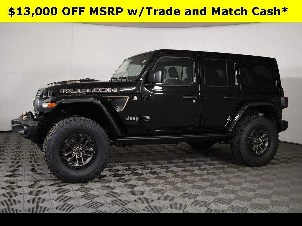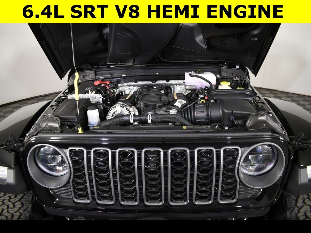 Black Clearcoat 2025 Jeep Wrangler Rubicon 392 4WD 8-Speed Automatic SRT HEMI 6.4L V8 MDS ** All-Wheel Drive, ** Alloy Wheels / Premium Wheels, ** Apple CarPlay/Android Auto, ** Backup Camera, ** Blind Spot Monitor, ** Cross Traffic Alert, ** Cruise Control, ** Four-Wheel Drive / 4X4, ** Heated Seats, ** Heated Steering Wheel, ** Keyless Entry, ** Keyless Start, ** Lane Departure Warning, ** Leather Seats, ** Navigation System, ** Premium Sound System / Premium Audio, ** Rear Cross Traffic Alert, ** Remote Start, ** Satellite Radio, ** Stability Control, ** Steering Wheel Controls, ** USB Port, ** WiFi Hotspot, 392 Final Edition Nappa Leather Seat, 392 Suspension, 4-Wheel Disc Brakes, 9 Speakers, ABS brakes, Air Conditioning, Alloy wheels, AM/FM radio: SiriusXM with 360L, Apple CarPlay/Android Auto, Auto High-beam Headlights, Auto-dimming Rear-View mirror, Automatic temperature control, Brake assist, Compass, Delay-off headlights, Driver vanity mirror, Dual front impact airbags, Dual front side impact airbags, Electronic Stability Control, Emergency communication system: Jeep Connect, Front Bucket Seats, Front Center Armrest w/Storage, Front dual zone A/C, Front fog lights, Front reading lights, Fully automatic headlights, Garage door transmitter, Glass rear window, Heated door mirrors, Heated front seats, Heated steering wheel, Illuminated entry, Integrated roll-over protection, Leather Shift Knob, Leather steering wheel, Low tire pressure warning, Navigation System, Occupant sensing airbag, Outside temperature display, Panic alarm, ParkView Rear Back-Up Camera, Passenger vanity mirror, Power door mirrors, Power driver seat, Power passenger seat, Power windows, Quick Order Package 27J 392 Final Edition, Radio data system, Radio: Uconnect 5 Nav w/12.3" Display, Rear reading lights, Rear seat center armrest, Rear window defroster, Rear window wiper, Remote keyless entry, Security system, Speed control, Split folding rear seat, Steering wheel mounted audio controls, Tachometer, Telescoping steering wheel, Tilt steering wheel, Traction control, Trip computer, Variably intermittent wipers, Voltmeter, Wheels: 17" x 8" Bronze Beadlock Capable.