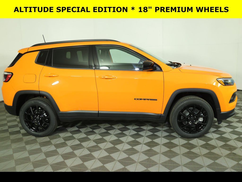 Joose 2026 Jeep Compass Latitude 4WD 8-Speed Automatic 2.0L I4 DOHC ** All-Wheel Drive, ** Alloy Wheels / Premium Wheels, ** Apple CarPlay/Android Auto, ** Automatic Emergency Braking, ** Backup Camera, ** Blind Spot Monitor, ** Cross Traffic Alert, ** Cruise Control, ** Four-Wheel Drive / 4X4, ** Heated Seats, ** Heated Steering Wheel, ** Keyless Entry, ** Keyless Start, ** Lane Departure Warning, ** Premium Sound System / Premium Audio, ** Rear Cross Traffic Alert, ** Remote Start, ** Satellite Radio, ** USB Port, ** WiFi Hotspot, 10.1" Touchscreen Display, 4-Wheel Disc Brakes, 4G LTE Wi-Fi Hot Spot, 6 Speakers, ABS brakes, Air Conditioning, Altitude Special Edition, AM/FM radio: SiriusXM, Auto High-beam Headlights, Automatic temperature control, Brake assist, Compass, Delay-off headlights, Driver vanity mirror, Dual front impact airbags, Dual front side impact airbags, Electronic Stability Control, Four wheel independent suspension, Front Bucket Seats, Front Center Armrest w/Storage, Front fog lights, Front reading lights, Fully automatic headlights, Heated door mirrors, Heated front seats, Heated steering wheel, Illuminated entry, Knee airbag, Leather Shift Knob, Leather steering wheel, Low tire pressure warning, Occupant sensing airbag, Outside temperature display, Overhead console, Panic alarm, ParkView Rear Back-Up Camera, Passenger vanity mirror, Power door mirrors, Power windows, Premium Cloth/Vinyl Bucket Seats, Quick Order Package 29N Altitude, Rear seat center armrest, Rear window defroster, Rear window wiper, Remote keyless entry, Security system, SiriusXM Satellite Radio, Speed control, Split folding rear seat, Steering wheel mounted audio controls, Tachometer, Telescoping steering wheel, Tilt steering wheel, Traction control, Trip computer, Variably intermittent wipers, Wheels: 18" x 7" Gloss Black Painted Aluminum.