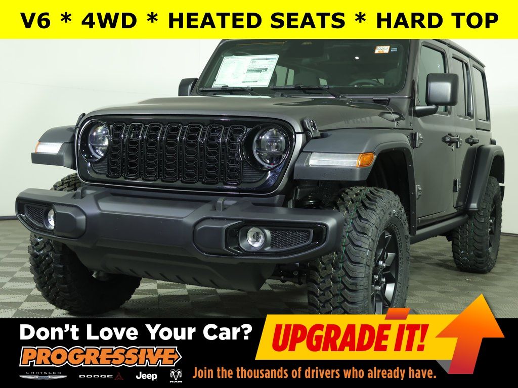 Granite Crystal Metallic Clearcoat 2026 Jeep Wrangler Willys 4WD 8-Speed Automatic 3.6L V6 24V VVT ** Adaptive Cruise Control, ** All-Wheel Drive, ** Alloy Wheels / Premium Wheels, ** Apple CarPlay/Android Auto, ** Backup Camera, ** Cruise Control, ** Four-Wheel Drive / 4X4, ** Heated Seats, ** Heated Steering Wheel, ** Keyless Entry, ** Keyless Start, ** Premium Sound System / Premium Audio, ** Remote Start, ** Satellite Radio, ** Stability Control, ** Steering Wheel Controls, ** Tow Hitch / Trailer Hitch, ** USB Port, ** WiFi Hotspot, 2-Door Passive Entry, Front Door Locks, 4-Wheel Disc Brakes, 4-Wheel Drive Swing Gate Decal, 4.10 Rear Axle Ratio, 8 Speakers, ABS brakes, Advanced Brake Assist, Air Conditioning, Air Filtering, AM/FM radio: SiriusXM with 360L, Apple CarPlay/Android Auto, Automatic Headlamps, Aux Battery, Auxiliary Switches, Black 3-Piece Hard Top, Black Grille, Brake assist, Class II Receiver Hitch, Cloth Low-Back Bucket Seats, Cluster 7.0" TFT Color Display, Compass, Convenience Group, Corning Gorilla Glass, Dana M210 Wide HD Tube Front Axle, Dana M220 Wide Rear Axle, Deep Tint Sunscreen Windows, Delay-off headlights, Driver vanity mirror, Dual front impact airbags, Dual front side impact airbags, E-Locker Rear Axle, Electronic Stability Control, Emergency/Assistance Call, Enhanced Adaptive Cruise Control, Freedom Panel Storage Bag, Front Bucket Seats, Front fog lights, Front LED Fog Lamps, Front reading lights, Full Speed Forward Collision Warning Plus, Heated Front Seats, Heated Steering Wheel, Illuminated entry, Injection Molded Black Rear Bumper, Integrated roll-over protection, LED Premium Reflector Headlamps, Low tire pressure warning, Molded in Color Rubicon Highline Flare, MOPAR All-Weather Floor Mats, Occupant sensing airbag, Off-Road Plus Mode, Outside temperature display, Panic alarm, ParkView Rear Back-Up Camera, Passenger vanity mirror, Power Heated Mirrors, Power windows, Premium Wrapped Steering Wheel, Quick Order Package 24W Willys, Radio data system, Rear reading lights, Rear Window Defroster, Rear Window Wiper/Washer, Remote keyless entry, Remote Start, Security Alarm, Speed control, Split folding rear seat, Steering wheel mounted audio controls, Tachometer, Telescoping steering wheel, Tilt steering wheel, Traction control, Trip computer, Universal Garage Door Opener, Variably intermittent wipers, Wheels: 17" x 7.5" Painted Black, Willy's Suspension, Willys Hood Decal.