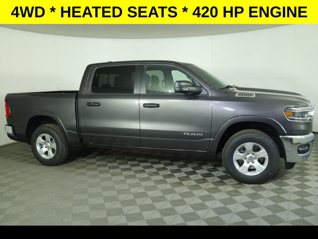 Granite Crystal Metallic Clearcoat 2026 Ram 1500 Big Horn/Lone Star 4WD 8-Speed Automatic 3.0L I6 ** Adaptive Cruise Control, ** All-Wheel Drive, ** Alloy Wheels / Premium Wheels, ** Apple CarPlay/Android Auto, ** Automatic Emergency Braking, ** Backup Camera, ** Blind Spot Monitor, ** Cross Traffic Alert, ** Cruise Control, ** Four-Wheel Drive / 4X4, ** Heated Seats, ** Heated Steering Wheel, ** Keyless Entry, ** Keyless Start, ** Lane Departure Warning, ** Premium Sound System / Premium Audio, ** Rear Cross Traffic Alert, ** Remote Start, ** Satellite Radio, ** Stability Control, ** Steering Wheel Controls, ** Tow Hitch / Trailer Hitch, ** USB Port, ** WiFi Hotspot, 115V Auxiliary Power Outlet, 2nd Row in Floor Storage Bins, 4-Wheel Disc Brakes, 400W Inverter, 48V Belt Starter Generator, 4G LTE Wi-Fi Hot Spot, 6 Speakers, ABS brakes, Air Conditioning, AM/FM radio, Apple CarPlay/Android Auto, Auto High-beam Headlights, Auto Power-Folding Mirrors, Auto-Dimming Exterior Driver Mirror, Auto-Dimming Rear-View Mirror, Big Horn Level 1 Equipment Group, Brake assist, Compass, Connectivity - US/Canada, Convex Wide-Angle Exterior Mirror Insert, Delay-off headlights, Deluxe Cloth Bucket Seats, Dual front impact airbags, Dual front side impact airbags, Electronic Stability Control, Exterior Mirrors Courtesy Lamps, Exterior Mirrors with Heating Element, Exterior Mirrors with Supplemental Signals, Front Center Armrest w/Storage, Front fog lights, Front reading lights, Front Seat Back Map Pockets, Front wheel independent suspension, Fully automatic headlights, Global Telematics Box Module, Glove Box Lamp, Google Android Auto, GPS Antenna Input, Heated door mirrors, Heated Front Seats, Heated Steering Wheel, Illuminated entry, Integrated Center Stack Radio, Integrated Voice Command with Bluetooth, Leather Wrapped Steering Wheel, Low tire pressure warning, MOPAR Front and Rear Rubber Floor Mats, Occupant sensing airbag, Outside temperature display, Overhead console, Panic alarm, ParkView Rear Back-Up Camera, Passenger vanity mirror, Power Adjust 8-Way Driver Seat, Power Adjustable Pedals, Power door mirrors, Power windows, Quick Order Package 21Z Big Horn, Radio data system, Radio: Uconnect 5 W with 8.4" Display, Rear 60/40 Folding Seat, Rear Center Armrest, Rear Dome with on/Off Switch Lamp, Rear Power Sliding Window, Rear step bumper, Rear Wheelhouse Liners, Rear Window Defroster, Remote keyless entry, SiriusXM Radio Service, SiriusXM Satellite Radio, Speed control, Steering Wheel Mounted Audio Controls, Sun Visors with Illuminated Vanity Mirrors, Tachometer, Telescoping steering wheel, Tilt steering wheel, Traction control, Trip computer, Universal Garage Door Opener, USB Host Flip, Variably intermittent wipers, Voltmeter, Wheels: 18" x 8" Cast-Aluminum Painted.