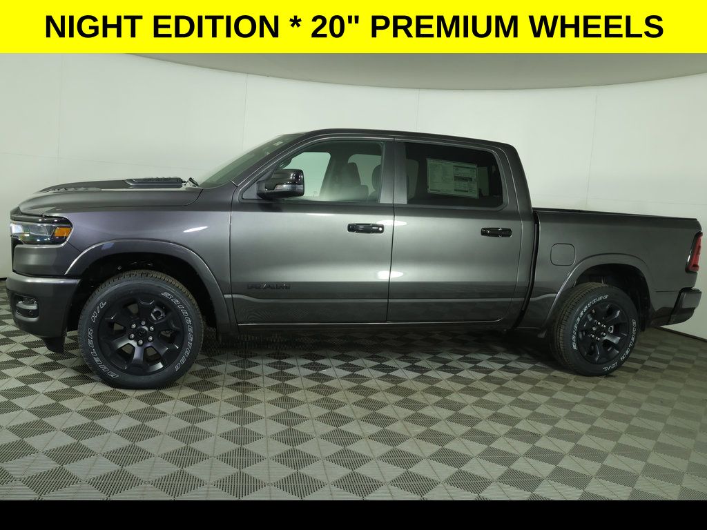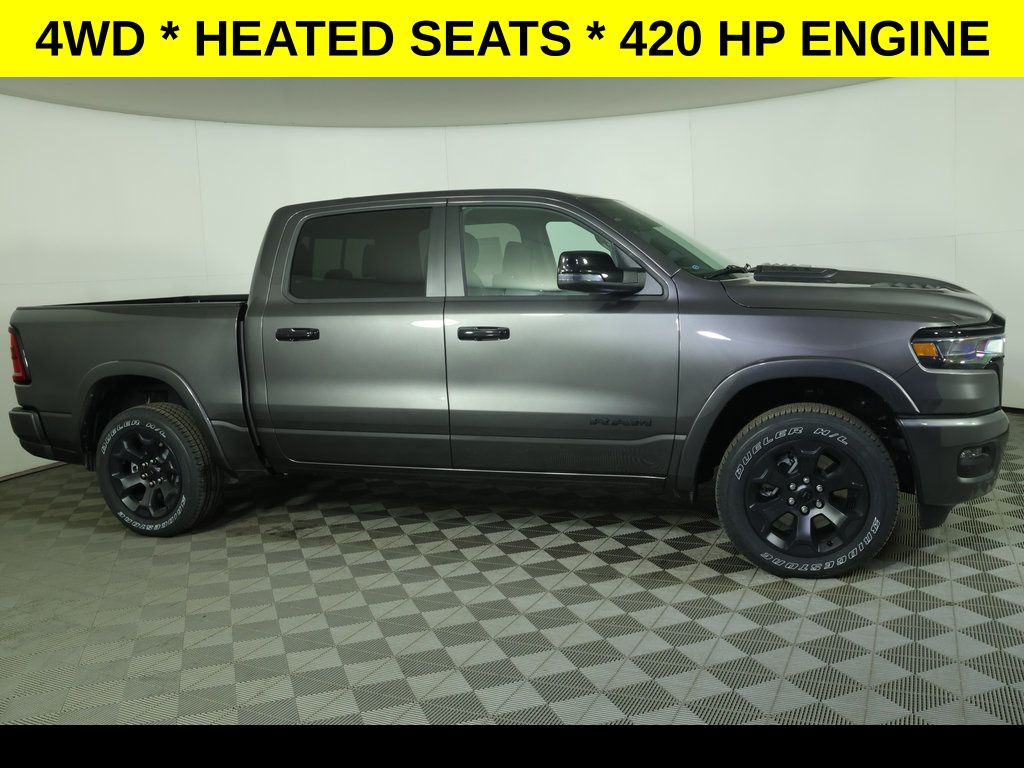 Granite Crystal Metallic Clearcoat 2026 Ram 1500 Big Horn/Lone Star 4WD 8-Speed Automatic 3.0L I6 ** Adaptive Cruise Control, ** All-Wheel Drive, ** Alloy Wheels / Premium Wheels, ** Apple CarPlay/Android Auto, ** Automatic Emergency Braking, ** Backup Camera, ** Blind Spot Monitor, ** Cross Traffic Alert, ** Cruise Control, ** Four-Wheel Drive / 4X4, ** Heated Seats, ** Heated Steering Wheel, ** Keyless Entry, ** Keyless Start, ** Lane Departure Warning, ** Navigation System, ** Premium Sound System / Premium Audio, ** Rear Cross Traffic Alert, ** Remote Start, ** Satellite Radio, ** Stability Control, ** Steering Wheel Controls, ** Tow Hitch / Trailer Hitch, ** USB Port, ** WiFi Hotspot, 115V Auxiliary Power Outlet, 115V Auxiliary Rear Power Outlet, 2nd Row in Floor Storage Bins, 4-Wheel Disc Brakes, 400W Inverter, 4G LTE Wi-Fi Hot Spot, 9 Amplified Speakers with Subwoofer, ABS brakes, Air Conditioning, Air Conditioning ATC with Dual Zone Control, AM/FM radio, Anti-Spin Differential Rear Axle, Apple CarPlay/Android Auto, Auto High-beam Headlights, Auto Power-Folding Mirrors, Auto-Dimming Exterior Driver Mirror, Auto-Dimming Rear-View Mirror, Big Horn Level 2 Equipment Group, Black Headlamp Bezels, Black Interior Accents, Body Color Front Bumper, Body Color Rear Bumper with Step Pads, Brake assist, Cloth Bucket Seats, Compass, Configurable Drive Mode, Connected Travel and Traffic Services, Connectivity - US/Canada, Convex Wide-Angle Exterior Mirror Insert, Delay-off headlights, Deluxe Cloth Bucket Seats, Disassociated Touchscreen Display, Dual Exhaust with Black Tips, Dual front impact airbags, Dual front side impact airbags, Electronic Stability Control, Exterior Mirrors Courtesy Lamps, Exterior Mirrors with Heating Element, Exterior Mirrors with Supplemental Signals, Front fog lights, Front reading lights, Front Seat Back Map Pockets, Front wheel independent suspension, Full Length Floor Console, Fully automatic headlights, Google Android Auto, GPS Antenna Input, GPS Navigation, HD Radio, Heated door mirrors, Heated Front Seats, Heated Steering Wheel, Illuminated entry, Integrated Center Stack Radio, Integrated Voice Command with Bluetooth, Leather Wrapped Steering Wheel, LED Dome Lamp with on/Off Switch, LED Footwell Lighting, Low tire pressure warning, Media Hub with 2 Charge Only USBs, MOPAR Front and Rear Rubber Floor Mats, Night Edition, Occupant sensing airbag, Outside temperature display, Overhead console, Overhead LED Lamps, Panic alarm, ParkView Rear Back-Up Camera, Passenger vanity mirror, Power Adjust 8-Way Driver Seat, Power Adjustable Pedals, Power door mirrors, Power windows, Quick Order Package 21Z Big Horn, Radio: Uconnect 5 Navigation with 12.0" Display, Rear 60/40 Folding Seat, Rear Center Armrest, Rear Power Sliding Window, Rear step bumper, Rear Wheelhouse Liners, Rear Window Defroster, Remote keyless entry, Remote Tailgate Release, Security Alarm, SiriusXM with 360L, Speed control, Steering Wheel Mounted Audio Controls, Sun Visors with Illuminated Vanity Mirrors, Tachometer, Telescoping steering wheel, Tilt steering wheel, Traction control, Trip computer, Universal Garage Door Opener, USB Host Flip, Variably intermittent wipers, Voltmeter, Wheels: 20" x 9.0" Aluminum Painted Clad.