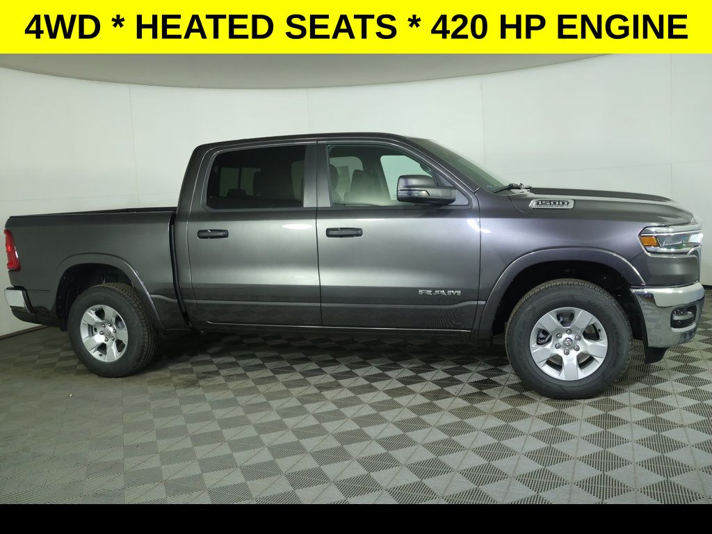 Granite Crystal Metallic Clearcoat 2026 Ram 1500 Big Horn/Lone Star 4WD 8-Speed Automatic 3.0L I6 ** Adaptive Cruise Control, ** All-Wheel Drive, ** Alloy Wheels / Premium Wheels, ** Apple CarPlay/Android Auto, ** Automatic Emergency Braking, ** Backup Camera, ** Blind Spot Monitor, ** Cross Traffic Alert, ** Cruise Control, ** Four-Wheel Drive / 4X4, ** Heated Seats, ** Heated Steering Wheel, ** Keyless Entry, ** Keyless Start, ** Lane Departure Warning, ** Premium Sound System / Premium Audio, ** Rear Cross Traffic Alert, ** Remote Start, ** Satellite Radio, ** Stability Control, ** Steering Wheel Controls, ** Tow Hitch / Trailer Hitch, ** USB Port, ** WiFi Hotspot, 2nd Row in Floor Storage Bins, 4-Wheel Disc Brakes, 400W Inverter, 6 Speakers, ABS brakes, Air Conditioning, AM/FM radio, Apple CarPlay/Android Auto, Auto High-beam Headlights, Auto Power-Folding Mirrors, Auto-Dimming Exterior Driver Mirror, Auto-Dimming Rear-View Mirror, Big Horn Level 1 Equipment Group, Body Color Fender Flares, Brake assist, Bucket Seats, Center Console Parts Module, Cloth Bucket Seats, Convex Wide-Angle Exterior Mirror Insert, Delay-off headlights, Deluxe Cloth Bucket Seats, Dual front impact airbags, Dual front side impact airbags, Electronic Stability Control, Exterior Mirrors Courtesy Lamps, Exterior Mirrors with Heating Element, Exterior Mirrors with Supplemental Signals, Front Center Armrest w/Storage, Front fog lights, Front reading lights, Front Seat Back Map Pockets, Front wheel independent suspension, Full Length Floor Console, Fully automatic headlights, Global Telematics Box Module, Google Android Auto, GPS Antenna Input, Heated door mirrors, Heated Front Seats, Heated Steering Wheel, Illuminated entry, Integrated Voice Command with Bluetooth, Leather Wrapped Steering Wheel, Low tire pressure warning, MOPAR Front and Rear Rubber Floor Mats, Occupant sensing airbag, Outside temperature display, Overhead console, Panic alarm, ParkView Rear Back-Up Camera, Passenger vanity mirror, Power 2-Way Driver Lumbar Adjust, Power Adjust 8-Way Driver Seat, Power Adjustable Pedals, Power door mirrors, Power windows, Quick Order Package 21Z Big Horn, Radio data system, Radio: Uconnect 5 W with 8.4" Display, Rear 60/40 Folding Seat, Rear Center Armrest, Rear Dome with on/Off Switch Lamp, Rear Power Sliding Window, Rear step bumper, Rear Wheelhouse Liners, Rear Window Defroster, Remote keyless entry, SiriusXM Radio Service, SiriusXM Satellite Radio, Speed control, Steering Wheel Mounted Audio Controls, Sun Visors with Illuminated Vanity Mirrors, Tachometer, Telescoping steering wheel, Tilt steering wheel, Traction control, Trip computer, Universal Garage Door Opener, USB Host Flip, Variably intermittent wipers, Voltmeter, Wheels: 18" x 8" Cast-Aluminum Painted.