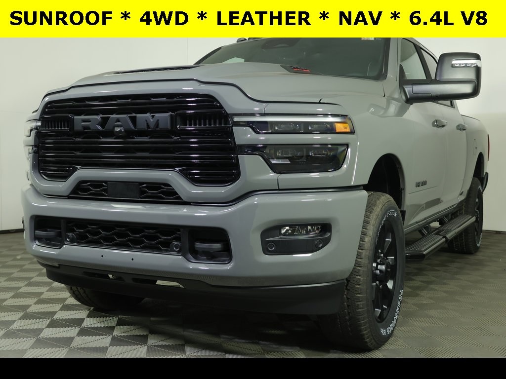 Ceramic Gray Clearcoat 2026 Ram 2500 Laramie 4WD 8-Speed Automatic 6.4L V8 ** Adaptive Cruise Control, ** Alloy Wheels / Premium Wheels, ** Apple CarPlay/Android Auto, ** Backup Camera, ** Blind Spot Monitor, ** Cross Traffic Alert, ** Cruise Control, ** Heated Seats, ** Heated Steering Wheel, ** Keyless Entry, ** Keyless Start, ** Lane Departure Warning, ** Leather Seats, ** Navigation System, ** Panoramic Roof / Sunroof, ** Premium Sound System / Premium Audio, ** Rear Cross Traffic Alert, ** Remote Start, ** Satellite Radio, ** Stability Control, ** Steering Wheel Controls, ** Sunroof/Moonroof, ** Tow Hitch / Trailer Hitch, ** USB Port, ** WiFi Hotspot, ** All-Wheel Drive, ** Four-Wheel Drive / 4X4, 115V Auxiliary Rear Power Outlet, 14.4" Touchscreen Display, 17 Speaker harman/kardon Premium Sound, 2nd Row In Floor Storage Bins, 4-Wheel Disc Brakes, 4G LTE Wi-Fi Hot Spot, ABS brakes, Active Lane Management System, Adaptive Steering System, Air Conditioning, Alexa Built-In, AM/FM radio: SiriusXM with 360L, Anti-Spin Differential Rear Axle, Apple CarPlay/Android Auto, Auto Adjust In Reverse Exterior Mirrors, Auto Dim Exterior Mirror, Auto High Beam Headlamp Control, Auto Power-Folding Mirrors, Auto-Dimming Exterior Passenger Mirror, Automatic temperature control, Black Wheel Center Hub, Brake assist, Bucket Seats, Clearance Lamps, Connected Travel & Traffic Services, Connectivity - US/Canada, CTR Stop Lamp w/Cargo View Camera, Delay-off headlights, Disassociated Touchscreen Display, Driver vanity mirror, Drowsy Driver Detection, Dual front impact airbags, Dual front side impact airbags, Dual Wireless Charging Pad, Electronic Stability Control, Emergency Vehicle Alert System (EVAS), Exterior Mirrors Courtesy Lamps, Exterior Mirrors w/Heating Element, Exterior Mirrors w/Memory, Exterior Mirrors w/Supplemental Signals, Folding Flat Load Floor Storage, Forward & Reverse Utility Lights, Front Center Armrest w/Storage, Front dual zone A/C, Front fog lights, Front reading lights, Front Seat Back Map Pockets, Full Length Upgraded Floor Console, Fully automatic headlights, Global Telematics Box Module (TBM), Google Android Auto, GPS Antenna Input, HD Radio, Heated door mirrors, Heated Front Seats, Heated Steering Wheel, High Back Seats, Illuminated entry, Integrated Voice Command w/Bluetooth, Laramie Level 2 Plus Equipment Group, Leather Trimmed Bucket Seats, LED Bed Lighting, Low tire pressure warning, Mirror Running Lights, MOPAR Deployable Bed Step, MOPAR Spray In Bedliner, Navigation System, Night Edition, Occupant sensing airbag, Off-Road Info Pages, Outside temperature display, Overhead console, Panic alarm, ParkView Rear Back-Up Camera, Passenger vanity mirror, Power Adjust 8-Way Driver Seat, Power Adjust 8-Way Front Passenger Seat, Power Adjust Mirrors, Power Adjustable Pedals w/Memory, Power Deployable Running Boards, Power driver seat, Power Heated Fold Telescopic Mirrors w/Memory, Power Sunroof, Power Telescoping Mirrors, Power windows, Power-Adjustable Convex Aux Mirrors, Quick Order Package 2UH Laramie, Radio data system, Radio: Uconnect 5 Nav w/14.4" Display, Radio/Driver Seat/Mirrors/Pedals Memory, Rain Sensitive Windshield Wipers, Rear 60/40 Folding Seat, Rear reading lights, Rear seat center armrest, Rear step bumper, Rear window defroster, Remote keyless entry, Remote Tailgate Release, Security system, Selectable Tire Fill Alert, SiriusXM Radio Service, SiriusXM w/360L, Speed control, Sport Performance Hood, Steering wheel mounted audio controls, Tachometer, Tilt steering wheel, Traction control, Traffic Sign Recognition, Trailer Tow Pages, Trip computer, Turn signal indicator mirrors, Variably intermittent wipers, Voltmeter, Wheels: 20" x 8.0" Black Painted Aluminum.