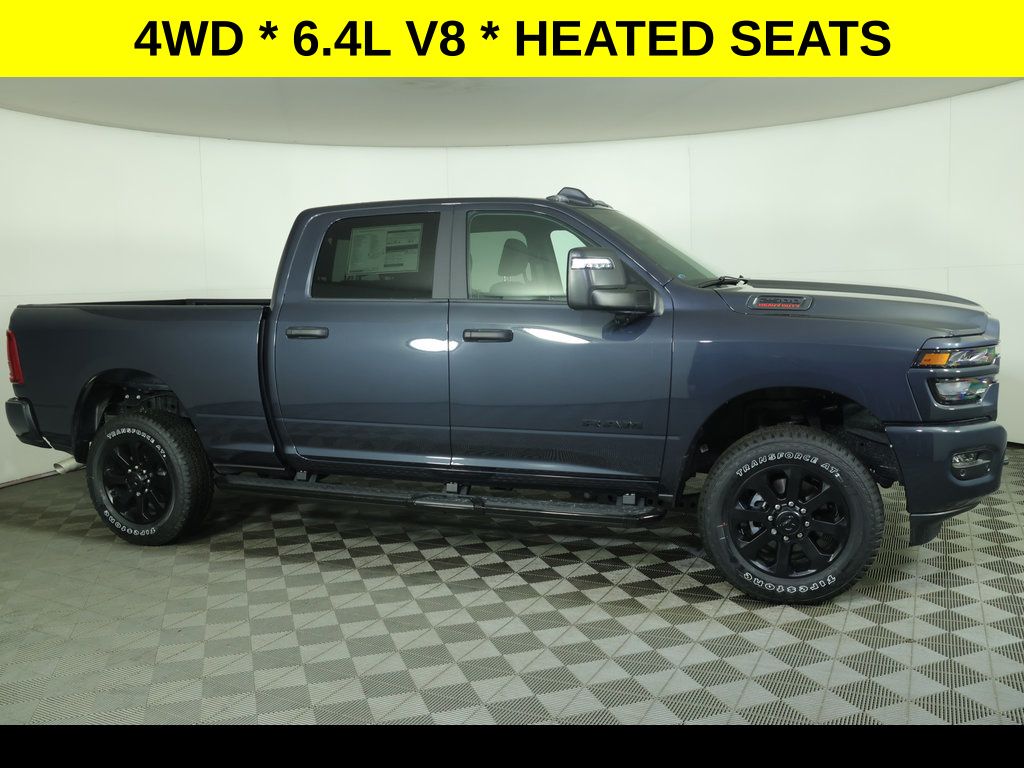 Forged Blue Metallic 2026 Ram 2500 Big Horn 4WD 8-Speed Automatic 6.4L V8 ** Adaptive Cruise Control, ** All-Wheel Drive, ** Alloy Wheels / Premium Wheels, ** Apple CarPlay/Android Auto, ** Automatic Emergency Braking, ** Backup Camera, ** Blind Spot Monitor, ** Cross Traffic Alert, ** Four-Wheel Drive / 4X4, ** Heated Seats, ** Heated Steering Wheel, ** Keyless Entry, ** Keyless Start, ** Navigation System, ** Premium Sound System / Premium Audio, ** Rear Cross Traffic Alert, ** Remote Start, ** Satellite Radio, ** Stability Control, ** Steering Wheel Controls, ** Tow Hitch / Trailer Hitch, ** USB Port, ** WiFi Hotspot, 115-Volt Auxiliary Front Power Outlet, 115V Auxiliary Rear Power Outlet, 2nd Row in Floor Storage Bins, 4-Wheel Disc Brakes, 400W Inverter, 4G LTE Wi-Fi Hot Spot, 9 Alpine Speakers with Subwoofer, ABS brakes, Active Lane Management System, Adaptive Steering System, Air Conditioning, Air Conditioning ATC with Dual Zone Control, Alexa Built-in, AM/FM radio: SiriusXM, Anti-Spin Differential Rear Axle, Apple CarPlay/Android Auto, Auto High Beam Headlamp Control, Auto Power-Folding Mirrors, Auto-Dimming Rear-View Mirror, Big Horn Level 2 Plus Equipment Group, Black Interior Accents, Black Wheel Center Hub, Blind Spot and Cross Path Detection, Brake assist, Bucket Seats, Center Stop Lamp with Cargo View Camera, Clearance Lamps, Compass, Connected Travel and Traffic Services, Connectivity - US/Canada, Dampened Tailgate, Delay-off headlights, Disassociated Touchscreen Display, Drowsy Driver Detection, Dual front impact airbags, Dual front side impact airbags, Dual Glove Boxes, Dual Wireless Charging Pad, Electronic Stability Control, Emergency Vehicle Alert System (EVAS), Exterior 115V AC Outlet, Exterior Mirrors Courtesy Lamps, Exterior Mirrors with Heating Element, Exterior Mirrors with Supplemental Signals, Folding Flat Load Floor Storage, Footwell Courtesy Lamp, Forward and Reverse Utility Lights, Front Center Armrest w/Storage, Front fog lights, Front reading lights, Front Seat Back Map Pockets, Full Length Upgraded Floor Console, Fully automatic headlights, Global Telematics Box Module, Google Android Auto, GPS Antenna Input, GPS Navigation, HD Radio, Heated Front Seats, Heated Steering Wheel, Illuminated entry, Integrated Voice Command with Bluetooth, LED Bed Lighting, LED Tail Lamps, Low tire pressure warning, Luxury Steering Wheel, Media Hub with 2 Charge Only USBs, Mirror Running Lights, MOPAR Deployable Bed Step, MOPAR Front and Rear Rubber Floor Mats, MOPAR Spray in Bedliner, Night Edition, Occupant sensing airbag, Off-Road Info Pages, Outside temperature display, Overhead console, Painted Flat Wheel-to-Wheel Side Steps, Panic alarm, ParkView Rear Back-Up Camera, Passenger vanity mirror, Power Adjust 8-Way Driver Seat, Power Adjust Mirrors, Power Adjustable Pedals, Power Heated Folding Telescopic Mirrors, Power Telescoping Mirrors, Power windows, Power-Adjustable Convex Aux Mirrors, Premium Cloth Bucket Seats, Quick Order Package 2UZ Big Horn, Radio data system, Radio: Uconnect 5 Navigation with 12.0" Display, Rain Sensitive Windshield Wipers, Rear 60/40 Folding Seat, Rear Dome with on/Off Switch Lamp, Rear Folding Seat, Rear Power Sliding Window, Rear window defroster, Red Tail Lamp Bezels, Remote keyless entry, Remote Start, Security system, Selectable Tire Fill Alert, SiriusXM Radio Service, SiriusXM with 360L, Speed control, Steering Wheel Mounted Audio Controls, Sun Visors with Illuminated Vanity Mirrors, Surround View Camera System, Tachometer, Tilt steering wheel, Traction control, Traffic Sign Recognition, Trailer Reverse Guidance, Trailer Tire Pressure Monitoring System, Trailer Tow Pages, Trip computer, Universal Garage Door Opener, Variably intermittent wipers, Wheels: 20" x 8.0" Black Painted Aluminum.