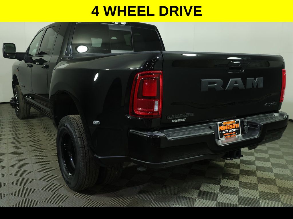 Diamond Black Crystal Pearlcoat 2026 Ram 3500 Laramie 4WD 8-Speed Automatic 6.7L I6 ** Adaptive Cruise Control, ** All-Wheel Drive, ** Alloy Wheels / Premium Wheels, ** Backup Camera, ** Blind Spot Monitor, ** Cooled Seats, ** Cross Traffic Alert, ** Cruise Control, ** Four-Wheel Drive / 4X4, ** Heated Seats, ** Heated Steering Wheel, ** Keyless Entry, ** Keyless Start, ** Lane Departure Warning, ** Leather Seats, ** Navigation System, ** Panoramic Roof / Sunroof, ** Premium Sound System / Premium Audio, ** Rear Cross Traffic Alert, ** Remote Start, ** Satellite Radio, ** Stability Control, ** Steering Wheel Controls, ** Sunroof/Moonroof, ** Tow Hitch / Trailer Hitch, ** USB Port, ** WiFi Hotspot, 115V Auxiliary Rear Power Outlet, 17 Speaker Harman/Kardon Premium Sound, 4-Wheel Disc Brakes, 4G LTE Wi-Fi Hot Spot, 5th Wheel/Gooseneck Towing Prep Group, 6,000 lbs Front Axle with Hub Extension, ABS brakes, Active Lane Management System, Adaptive Steering System, Air Conditioning, Alexa Built-in, AM/FM radio: SiriusXM with 360L, Auto Adjust in Reverse Exterior Mirrors, Auto Dim Exterior Mirror, Auto High Beam Headlamp Control, Auto Level Rear Air Suspension, Auto Power-Folding Mirrors, Auto-dimming Rear-View mirror, Automatic temperature control, Black Wheel Center Hub, Box and Rear Fender Clearance Lamps, Brake assist, Center Hub, Center Stop Lamp with Cargo View Camera, Clearance Lamps, Compass, Connected Travel and Traffic Services, Connectivity - US/Canada, Digital 3.0 Rear View Auto Dim Mirror, Disassociated Touchscreen Display, Drowsy Driver Detection, Dual front impact airbags, Dual front side impact airbags, Dual Rear Wheels, Dual Wireless Charging Pad, Electronic Stability Control, Exterior Mirrors with Heating Element, Exterior Mirrors with Supplemental Signals, Front Center Armrest w/Storage, Front dual zone A/C, Front fog lights, Front reading lights, Front Seat Back Map Pockets, Fully automatic headlights, Global Telematics Box Module, Google Android Auto, GPS Antenna Input, HD Radio, Heated front seats, Heated Steering Wheel, High Back Seats, Illuminated entry, Integrated Voice Command with Bluetooth, Laramie Level 2 Plus Equipment Group, Leather Trimmed Bucket Seats, LED Bed Lighting, Low tire pressure warning, Max Tow Package, MOPAR Deployable Bed Step, MOPAR Front and Rear Rubber Floor Mats, MOPAR Spray in Bedliner, MOPAR Trailer Camera Wiring with No Camera, Navigation System, Night Edition, Occupant sensing airbag, Off-Road Information Pages, Outside temperature display, Overhead console, Panic alarm, ParkView Rear Back-Up Camera, Power Adjust 8-Way Driver Seat, Power Adjust 8-Way Front Passenger Seat, Power Adjust Mirrors, Power Adjustable Pedals with Memory, Power Deployable Running Boards, Power door mirrors, Power driver seat, Power Sunroof, Power windows, Quick Order Package 24H Laramie, Radio: Uconnect 5 Nav with 14.4" Display, Radio/Driver Seat/Mirrors/Pedals Memory, Rain Sensitive Windshield Wipers, Rear 60/40 Folding Seat, Rear reading lights, Rear seat center armrest, Rear step bumper, Rear window defroster, Remote keyless entry, Remote Tailgate Release, Security system, Selectable Tire Fill Alert, SiriusXM with 360L, Speed control, Split folding rear seat, Sport Performance Hood, Steering wheel mounted audio controls, Surround View Camera System, Tachometer, Tilt steering wheel, Tow Technology Plus Group, Towing Technology Group, Traction control, Traffic Sign Recognition, Trailer Reverse Guidance, Trailer Reverse Steering Control, Trailer Tire Pressure Monitoring System, Trailer Tow Pages, Trip computer, Variably intermittent wipers, Ventilated Front Seats, Voltmeter, Wheels: 17" x 6.0" Polished Aluminum.