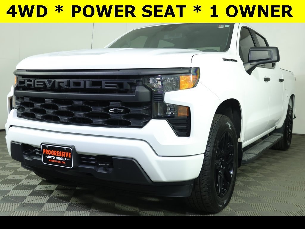 All Wheel Drive, ** Apple CarPlay/Android Auto, ** Alloy Wheels / Premium Wheels, ** Backup Camera, ** Cruise Control, ** Keyless Entry, ** Keyless Start, ** Lane Departure Warning, ** Premium Sound System / Premium Audio, ** Remote Start, ** Satellite Radio, ** Stability Control, ** Steering Wheel Controls, ** Tow Hitch / Trailer Hitch, ** USB Port, ** WiFi Hotspot, ** All-Wheel Drive, ** Four-Wheel Drive / 4X4, 10-Way Power Driver Seat w/Lumbar, 120-Volt Bed Mounted Power Outlet, 120-Volt Instrument Panel Power Outlet, 4-Wheel Disc Brakes, 40/20/40 Front Split-Bench Seat, 6-Speaker Audio System, 6 Rectangular Black Tubular Assist Steps (LPO), ABS brakes, Air Conditioning, AM/FM radio: SiriusXM, Apple CarPlay/Android Auto, Auto High-beam Headlights, Auto-Locking Rear Differential, Automatic Emergency Braking, Black Name Plates (LPO), Black Tailgate CHEVROLET Lettering (LPO), Bluetooth® For Phone, Brake assist, Chevrolet Connected Access Capable, Chevytec Spray-On Black Bedliner, Cloth Seat Trim, Color-Keyed Carpeting Floor Covering, Compass, Custom Convenience Package, Custom Value Package, Dark Essentials Package (LPO), Deep-Tinted Glass, Delay-off headlights, Driver vanity mirror, Dual front impact airbags, Dual front side impact airbags, Dual Rear USB Ports (Charge Only), Electric Rear-Window Defogger, Electrical Steering Column Lock, Electronic Cruise Control, Electronic Stability Control, EZ Lift Power Lock & Release Tailgate, Following Distance Indicator, Forward Collision Alert, Front Black Bowtie Emblem (LPO), Front Frame-Mounted Black Recovery Hooks, Front Pedestrian Braking, Front reading lights, Front wheel independent suspension, Fully automatic headlights, HD Rear Vision Camera, Heated door mirrors, High Capacity Suspension Package, Hitch Guidance, Illuminated entry, IntelliBeam Automatic High Beam On/Off, Lane Keep Assist w/Lane Departure Warning, LED Cargo Area Lighting, Low tire pressure warning, Manual Tilt Wheel Steering Column, Occupant sensing airbag, OnStar & Chevrolet Connected Services Capable, Outside temperature display, Overhead console, Panic alarm, Passenger vanity mirror, Power door mirrors, Power driver seat, Power Front Windows w/Driver Express Up/Down, Power windows, Preferred Equipment Group 1CX, Radio: Chevrolet Infotainment 3 System, Rear 60/40 Folding Bench Seat (Folds Up), Rear reading lights, Rear window defroster, Remote Keyless Entry, Remote keyless entry, Remote Start, Security system, SiriusXM Radio, Speed control, Speed-sensing steering, Split folding rear seat, Tachometer, Theft Deterrent System (Unauthorized Entry), Tilt steering wheel, Traction control, Trailering Package, Trip computer, Variably intermittent wipers, Voltmeter, Wheels: 20 x 9 High Gloss Black Painted Alum, Wi-Fi Hot Spot Capable, Wireless Phone Projection. Retail price available to all customers. Terms and conditions may apply. Estimated selling price may require financing through preferred lenders. All financing subject to credit approval. See dealer for full details. You'll be happy you chose Progressive Auto Group in MASSILLON for this 2022 Chevrolet Silverado 1500.
