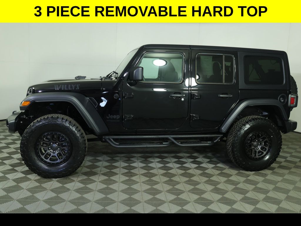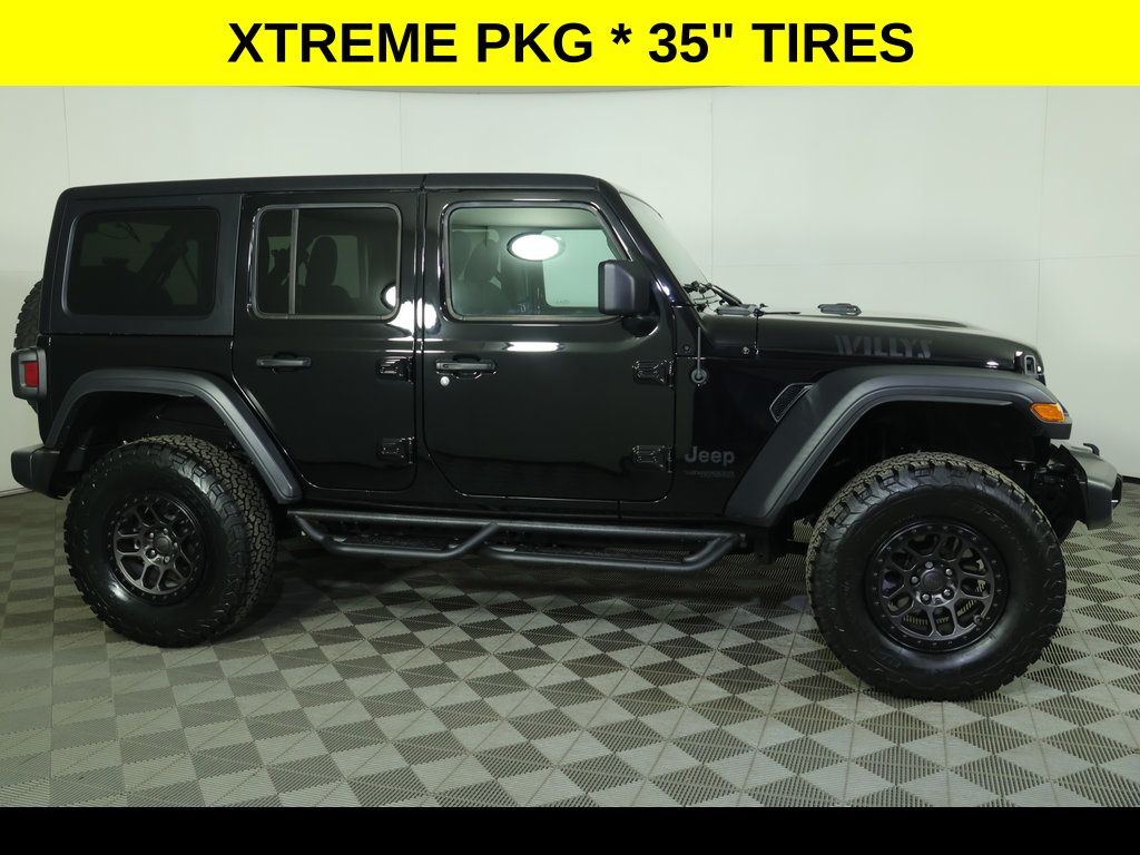 DON'T LOVE YOUR CAR ? UPGRADE IT !...With 35" Extreme Tire Package ** Heated Seats ** Navigation ** Apple CarPlay/Android Auto, ** Backup Camera, ** Cruise Control, ** Four-Wheel Drive / 4X4, ** Heated Seats, ** Heated Steering Wheel, ** Keyless Entry, ** Keyless Start, ** Navigation System, ** Premium Sound System / Premium Audio, ** Remote Start, ** Satellite Radio, ** Stability Control, ** Steering Wheel Controls, ** USB Port, ** WiFi Hotspot, 2-Door Passive Entry, Front Door Locks, 220 Amp Alternator, 35" Tire Suspension, 4-Wheel Disc Brakes, 4-Wheel Drive Swing Gate Decal, 4.56 Rear Axle Ratio, 4G LTE Wi-Fi Hot Spot, 8.4" Radio & Premium Audio Group, 8.4" Touchscreen Display, ABS brakes, Air Conditioning, Air Conditioning w/Auto Temperature Control, Air Filtering, Alpine Premium Audio System, AM/FM radio, Anti-Lock 4-Wheel Disc Perf Brakes, Anti-Spin Differential Rear Axle, Apple CarPlay/Android Auto, Auto-Dimming Rear-View Mirror, Automatic Headlamps, Aux Battery, Black 3-Piece Hard Top, Black 3-Piece Hard Top, Brake assist, Cloth Low-Back Bucket Seats, Cold Weather Group, Compass, Convenience Group, Corning Gorilla Glass, Dana M210 Wide HD Tube Front Axle, Dana M220 Wide Rear Axle, Deep Tint Sunscreen Windows, Delay-off headlights, Driver vanity mirror, Dual front impact airbags, Dual front side impact airbags, Dual Top Group, Electronic Stability Control, Emergency communication system: SiriusXM Guardian, Emergency/Assistance Call, Freedom Panel Storage Bag, Front 1-Touch Down Power Windows, Front Bucket Seats, Front fog lights, Front LED Fog Lamps, Front reading lights, GPS Navigation, HD Radio, Heated Front Seats, Heated Steering Wheel, Injection Molded Black Rear Bumper, Integrated roll-over protection, Leather Wrapped Steering Wheel, LED Headlamp & Fog Lamp Group, LED Premium Reflector Headlamps, Low tire pressure warning, Matte Black Jeep Badge, Molded in Color Rubicon Highline Flare, Non-Lock Fuel Cap w/o Discriminator, Occupant sensing airbag, Off-Road Info Pages, Outside temperature display, ParkView Rear Back-Up Camera, Passenger vanity mirror, Power Heated Mirrors, Premium Black Sunrider Soft Top w/Dual Top Group, Quick Order Package 25W Willys, Radio: Uconnect 4C Nav w/8.4" Display, Rear reading lights, Rear Window Defroster, Rear Window Wiper/Washer, Remote Keyless Entry, Security Alarm, SiriusXM Radio Service, SiriusXM Satellite Radio, SiriusXM Traffic Plus, SiriusXM Travel Link, Speed control, Speed Sensitive Power Locks, Split folding rear seat, Steering wheel mounted audio controls, Stop-Start Dual Battery System, Sun Visors w/Illuminated Vanity Mirrors, Tachometer, Technology Group, Telescoping steering wheel, Tilt steering wheel, Traction control, Trip computer, Universal Garage Door Opener, Variably intermittent wipers, Wheel Flare Extensions, Wheels: 17" x 7.5" Moab Black Aluminum, Wheels: 17" x 8" Beadlock Capable, Willys, Willys Hood Decal, Xtreme Recon 35" Tire Package.