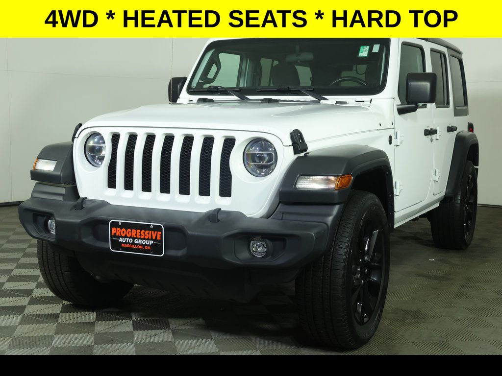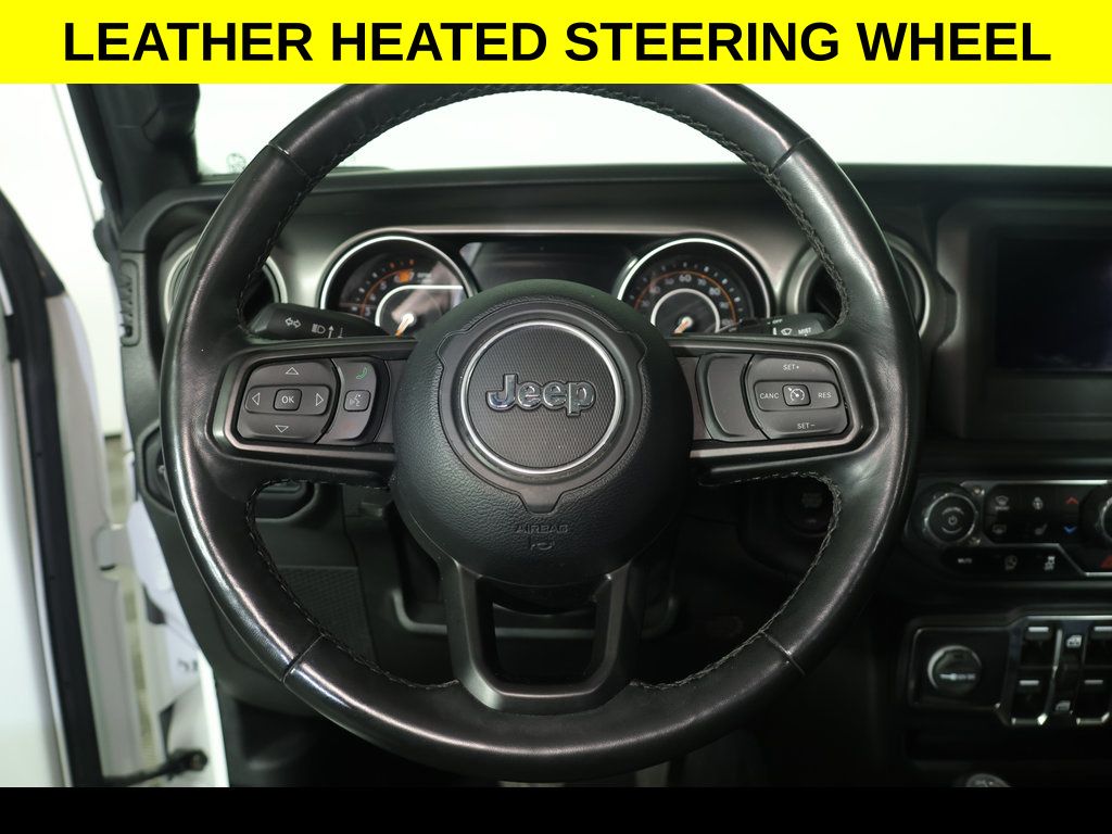 Premium Wheels, ** Apple CarPlay/Android Auto, ** Backup Camera, ** Four-Wheel Drive / 4X4, ** Heated Seats, ** Heated Steering Wheel, ** Keyless Entry, ** Keyless Start, ** Premium Sound System / Premium Audio, ** Rear Cross Traffic Alert, ** Remote Start, ** Satellite Radio, ** Stability Control, ** Steering Wheel Controls, ** USB Port, ** WiFi Hotspot, 2-Door Passive Entry, Front Door Locks, 4-Wheel Disc Brakes, 8 Speakers, ABS brakes, Air Conditioning, Air Conditioning w/Auto Temperature Control, Air Filtering, AM/FM radio, Apple CarPlay/Android Auto, Automatic Headlamps, Aux Battery, Black 3-Piece Hard Top, Brake assist, Cloth Low-Back Bucket Seats, Cold Weather Group, Compass, Convenience Group, Corning Gorilla Glass, Deep Tint Sunscreen Windows, Delay-off headlights, Driver vanity mirror, Dual front impact airbags, Dual front side impact airbags, Electronic Stability Control, Emergency communication system: SiriusXM Guardian, Freedom Panel Storage Bag, Front 1-Touch Down Power Windows, Front Bucket Seats, Front Center Armrest w/Storage, Front fog lights, Front LED Fog Lamps, Front reading lights, Heated Front Seats, Heated Steering Wheel, Integrated roll-over protection, Leather Wrapped Steering Wheel, LED Headlamp & Fog Lamp Group, LED Premium Reflector Headlamps, Low tire pressure warning, Non-Lock Fuel Cap w/o Discriminator, Occupant sensing airbag, Outside temperature display, ParkView Rear Back-Up Camera, Passenger vanity mirror, Power Heated Mirrors, Quick Order Package 22S Sport S, Radio: Uconnect 4 w/7" Display, Rear reading lights, Rear Window Defroster, Rear Window Wiper/Washer, Remote Keyless Entry, Remote Start, Security Alarm, SiriusXM Radio Service, SiriusXM Satellite Radio, Speed control, Speed Sensitive Power Locks, Split folding rear seat, Sport S, Steering wheel mounted audio controls, Sun Visors w/Illuminated Vanity Mirrors, Tachometer, Technology Group, Telescoping steering wheel, Tilt steering wheel, Traction control, Trip computer, Universal Garage Door Opener, Variably intermittent wipers, Wheels: 17" x 7.5" Tech Silver Aluminum.