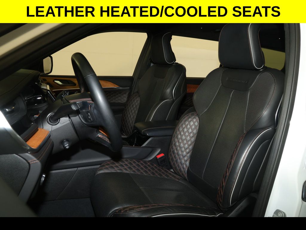 DON'T LOVE YOUR CAR ? UPGRADE IT !...With ** Moonroof ** New Tires ** Leather ** Navigation ** 4 Wheel Drive ** Adaptive Cruise Control, ** Alloy Wheels / Premium Wheels, ** Apple CarPlay/Android Auto, ** Automatic Emergency Braking, ** Backup Camera, ** Blind Spot Monitor, ** Cooled Seats, ** Cross Traffic Alert, ** Cruise Control, ** Four-Wheel Drive / 4X4, ** Heated Seats, ** Heated Steering Wheel, ** Keyless Entry, ** Keyless Start, ** Lane Departure Warning, ** Leather Seats, ** Navigation System, ** Panoramic Roof / Sunroof, ** Premium Sound System / Premium Audio, ** Rear Cross Traffic Alert, ** Remote Start, ** Satellite Radio, ** Stability Control, ** Steering Wheel Controls, ** Sunroof/Moonroof, ** Third Row Seating / 3rd Row Seating, ** USB Port, ** WiFi Hotspot, 19 Speakers High Performance Audio, 3rd row seats: split-bench, 4-Wheel Disc Brakes, 950 Watt Amplifier, ABS brakes, Active Noise Control System, Adaptive suspension, Air Conditioning, Anti-whiplash front head restraints, Audio memory, Auto High-beam Headlights, Auto-dimming Rear-View mirror, Auto-leveling suspension, Automatic temperature control, Brake assist, Compass, Delay-off headlights, Deluxe Headliner, Driver vanity mirror, Dual front impact airbags, Dual front side impact airbags, Electronic Stability Control, Emergency communication system, Four wheel independent suspension, Front Bucket Seats, Front dual zone A/C, Front fog lights, Front Passenger Interactive Display, Front reading lights, Fully automatic headlights, Garage door transmitter, Genuine wood dashboard insert, Gloss Black Roof Rails, Heated door mirrors, Heated front seats, Heated rear seats, Heated steering wheel, High Altitude Package, Illuminated entry, Knee airbag, Leather steering wheel, Low tire pressure warning, Memory seat, Nappa Leather Seats, Navigation System, Occupant sensing airbag, Outside temperature display, Overhead console, Palermo Leather Door Trim, Palermo Leather Seats, Panic alarm, Passenger vanity mirror, Power door mirrors, Power driver seat, Power Fold Seatbacks, Power Liftgate, Power moonroof, Power passenger seat, Power windows, Quick Order Package 23U Summit Reserve, Radio data system, Radio: Uconnect 5 Nav w/10.1" Display, Rain sensing wipers, Rear air conditioning, Rear dual zone A/C, Rear reading lights, Rear seat center armrest, Rear window defroster, Rear window wiper, Reclining 3rd row seat, Remote keyless entry, Security system, Speed control, Speed-Sensitive Wipers, Split folding rear seat, Steering wheel memory, Steering wheel mounted audio controls, Summit Reserve, Tachometer, Telescoping steering wheel, Tilt steering wheel, Traction control, Trip computer, Turn signal indicator mirrors, Two Tone Paint Group, Variably intermittent wipers, Ventilated front seats, Ventilated Rear Seats, Voltmeter, Wheels: 21" x 9" Black Painted Aluminum.