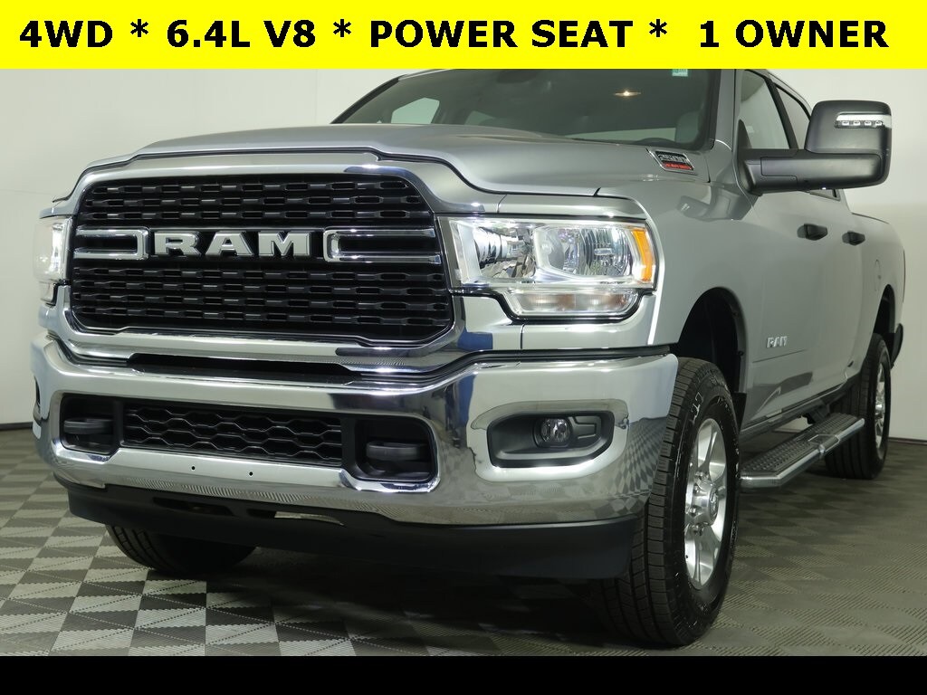 ** Alloy Wheels / Premium Wheels, ** Apple CarPlay/Android Auto, ** Backup Camera, ** Cruise Control, ** Keyless Entry, ** Premium Sound System / Premium Audio, ** Satellite Radio, ** Stability Control, ** Steering Wheel Controls, ** Tow Hitch / Trailer Hitch, ** USB Port, ** WiFi Hotspot, ** All-Wheel Drive, ** Four-Wheel Drive / 4X4, 2nd Row In Floor Storage Bins, 4-Wheel Disc Brakes, 40/20/40 Split Bench Seat, 4G LTE Wi-Fi Hot Spot, 6 Speakers, 8.4" Touchscreen Display, ABS brakes, Active Noise Control System, Air Conditioning, Apple CarPlay, Auto Power-Folding Mirrors, Big Horn IP Badge, Bluetooth Handsfree Phone & Audio, Brake assist, Center Hub, Center Stack Storage Drawer, Chrome Flat Cab-Length Side Steps, Compass, Connectivity - US/Canada, Delay-off headlights, Dual front impact airbags, Dual front side impact airbags, Dual Glove Boxes, Electronic Stability Control, Electronically Controlled Throttle, Emergency communication system: SiriusXM Guardian, Exterior Mirrors Courtesy Lamps, Exterior Mirrors w/Heating Element, Exterior Mirrors w/Supplemental Signals, Foam Bottle Insert (Door Trim Panel), Footwell Courtesy Lamp, Forward & Reverse Utility Lights, Front Armrest w/Cupholders, Front Center Armrest w/Storage, Front Center Seat Cushion Storage, Front Fog Lamps, Front reading lights, Front Seat Back Map Pockets, Fully automatic headlights, Global Telematics Box Module (TBM), Glove Box Lamp, Google Android Auto, GPS Antenna Input, Heated door mirrors, Illuminated entry, Integrated Center Stack Radio, Integrated Voice Command w/Bluetooth, Leather Wrapped Steering Wheel, Level 1 Equipment Group, Locking Lower Glove Box, Low tire pressure warning, Mirror Running Lights, Occupant sensing airbag, Outside temperature display, Overhead console, Panic alarm, ParkView Rear Back-Up Camera, Passenger vanity mirror, Power Adjust 8-Way Driver Seat, Power Adjust Mirrors, Power Adjustable Convex Aux Mirrors, Power door mirrors, Power Heated Fold Telescope Mirrors, Power Telescoping Mirrors, Power windows, Premium Cloth 40/20/40 Bench Seat, Premium Cloth 40/20/40 Bench Seat (DISC), Quick Order Package 2GZ Big Horn, Radio: Uconnect 5 W w/8.4" Display (A62), Rear 60/40 Folding Seat, Rear anti-roll bar, Rear Folding Seat, Rear step bumper, Remote keyless entry, Remote USB Port - Charge Only, Selectable Tire Fill Alert, SiriusXM Radio Service, SiriusXM Satellite Radio, Speed control, Steering Wheel Mounted Audio Controls, Storage Tray, Tachometer, Tilt steering wheel, Tip Start, Tow Hooks, Traction control, Trip computer, Turn signal indicator mirrors, Variably intermittent wipers, Wheels: 18" x 8.0" Polished Aluminum.